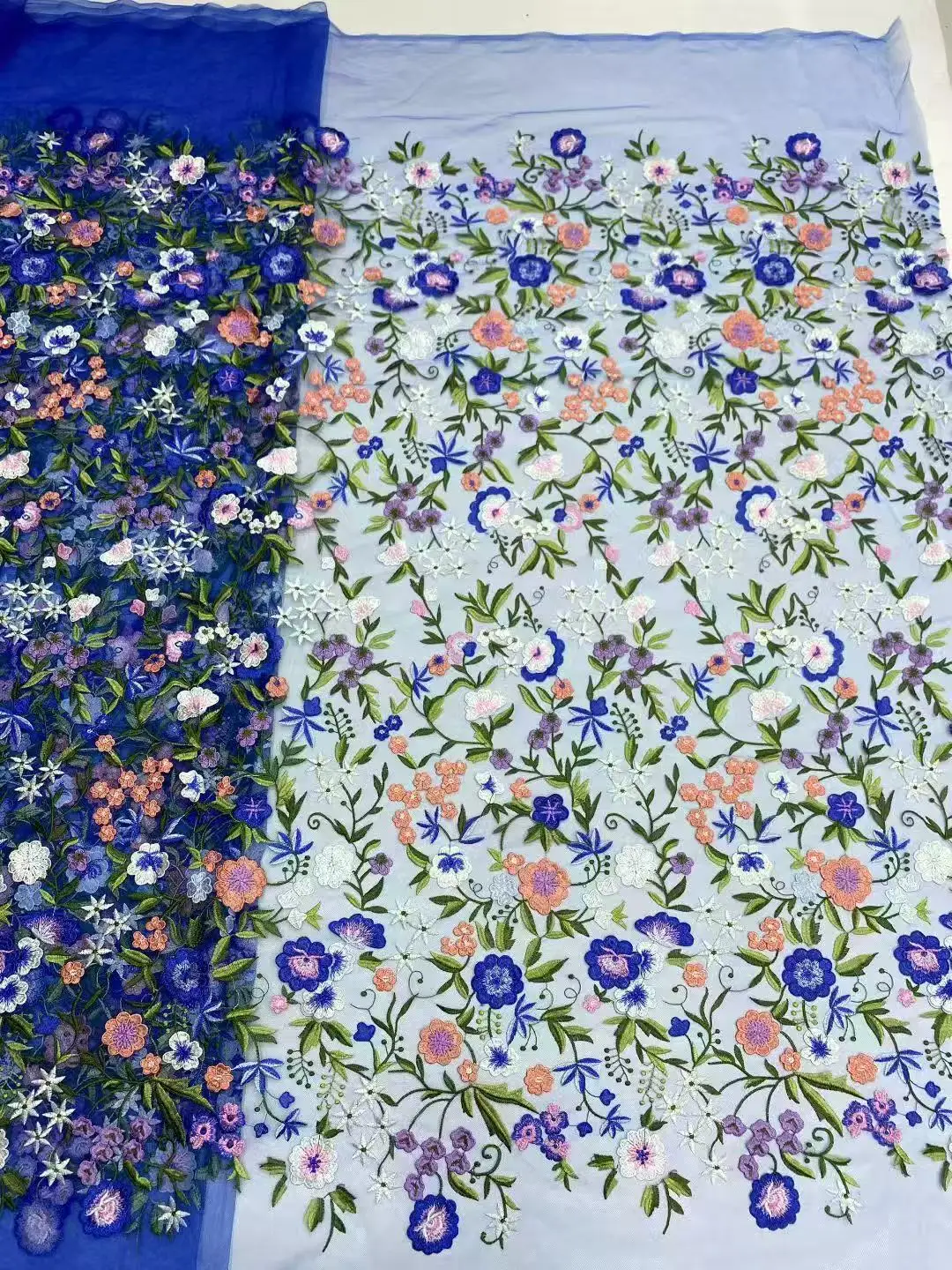 Color: Gold, Width: 120cm, Length: 5 yards - Purple 3D Flowers French Latest Nigerian Lace Fabrics 2025 High Quality Net African Lace with Beads for Wedding Party 2025