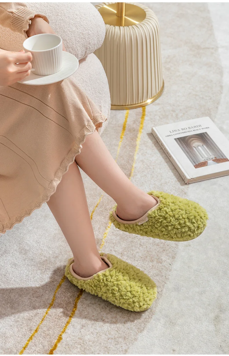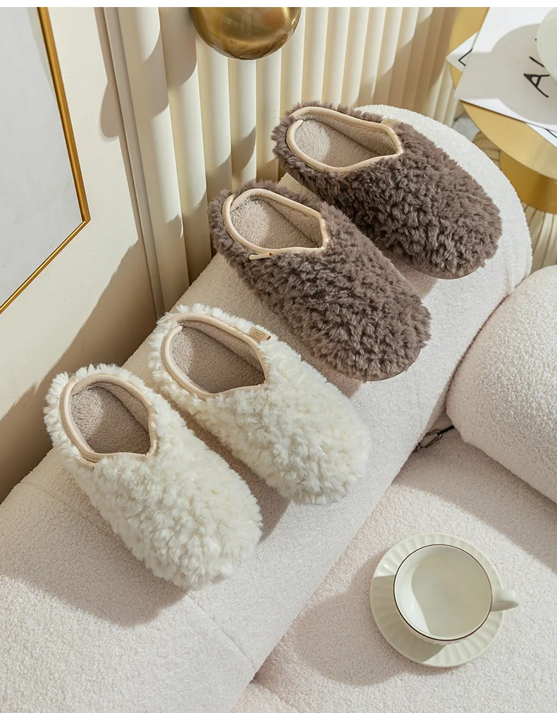 Gacimy Women's Winter Fuzzy Slippers Indoor Warm Soft Sole Fluffy Home Slides Plush Women Flat Shoes Couple Fur Cotton Slippers