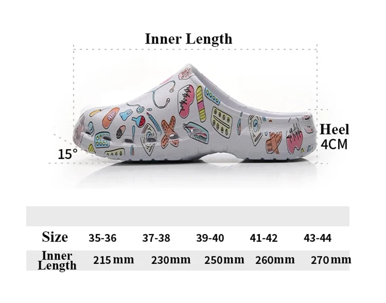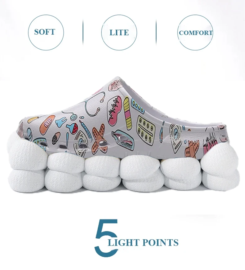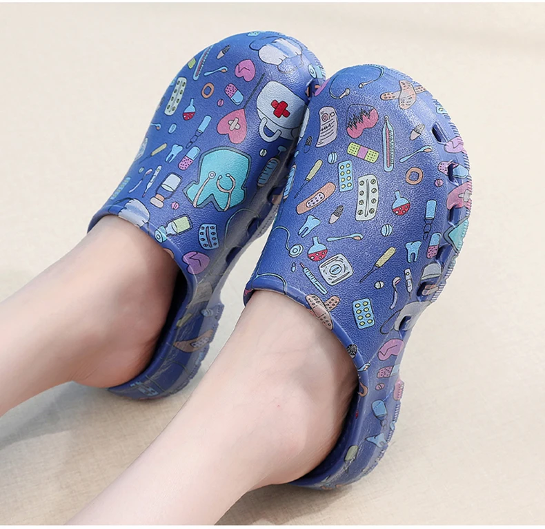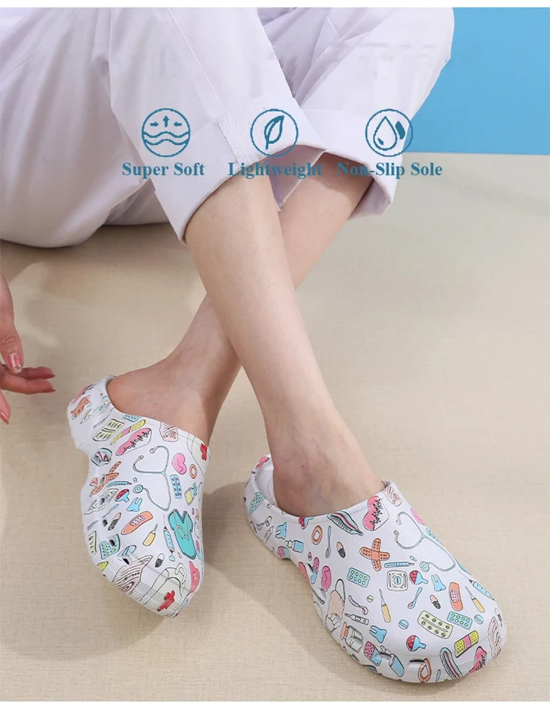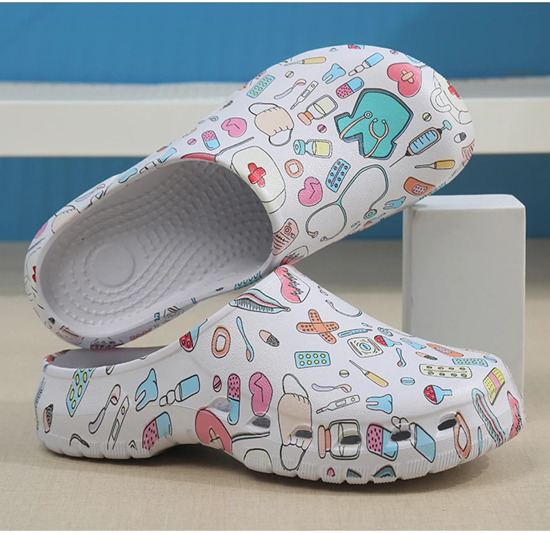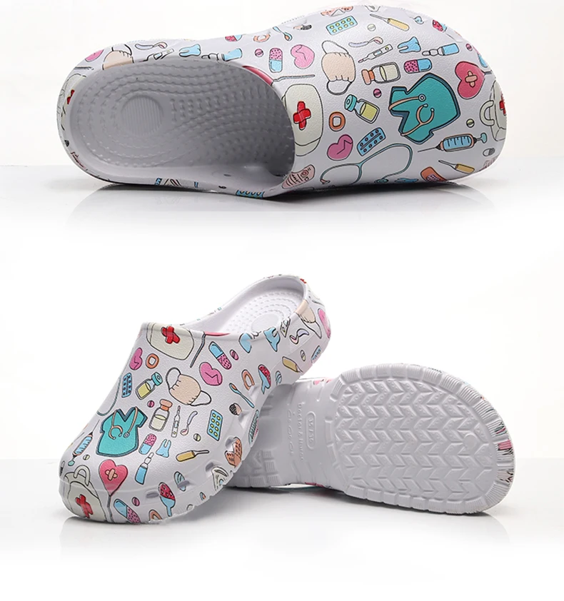 Color: Grass-Green, Shoe Size: 35-36 - Medical print Nurse Clogs EVA Surgical Slippers Lightweight Non-slip Doctor Scrub Clogs Dental Pet Clinic Nursing Clogs Y07-1