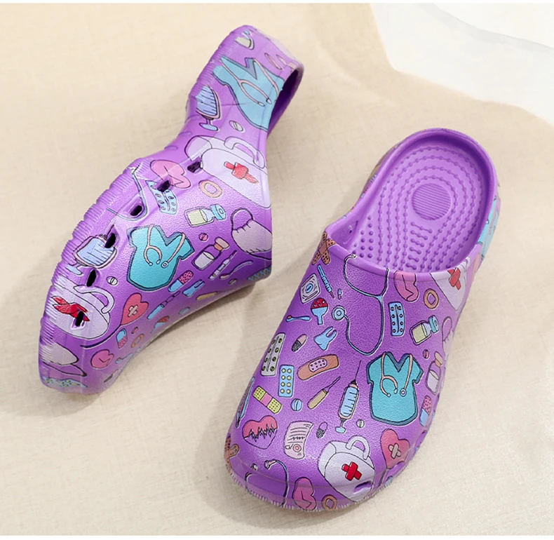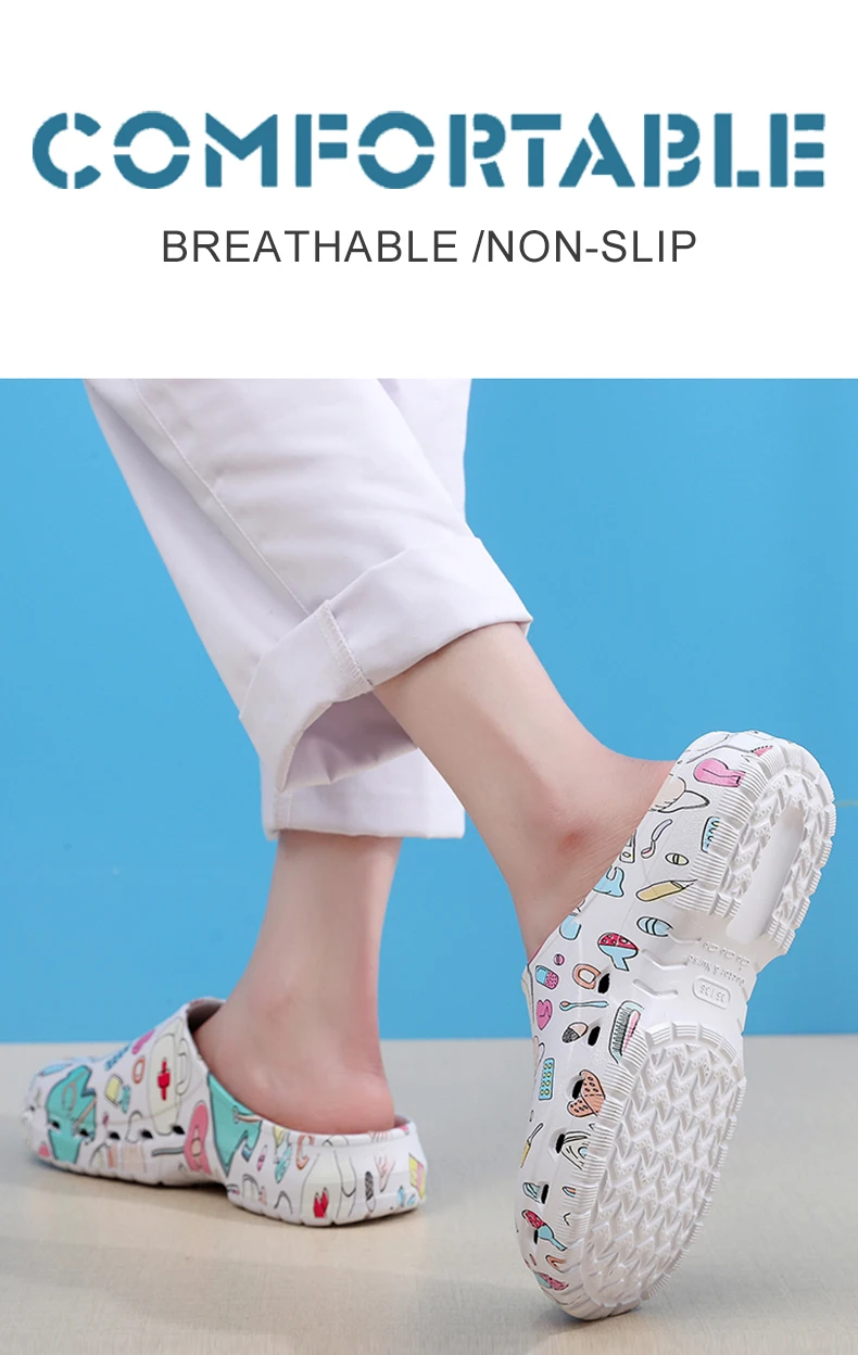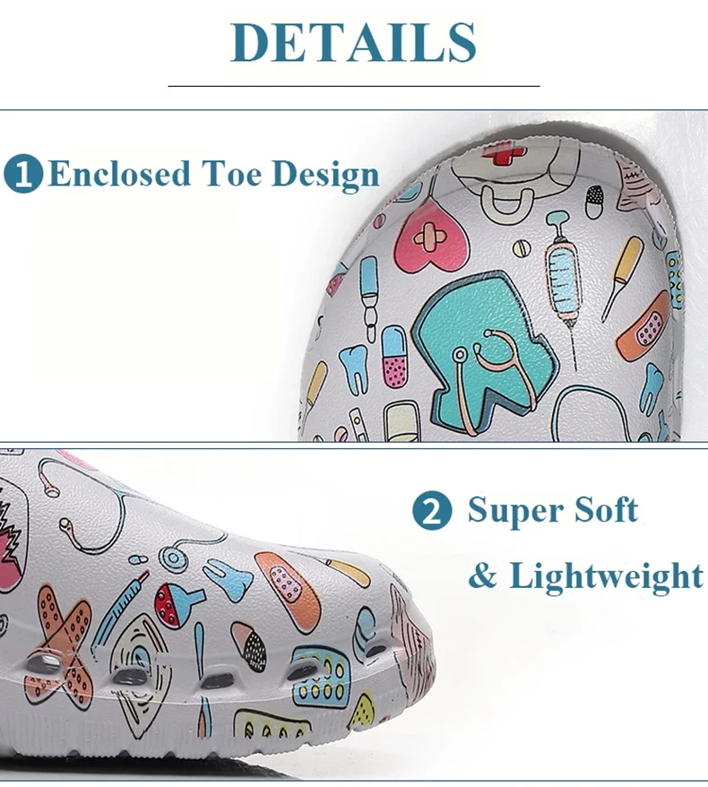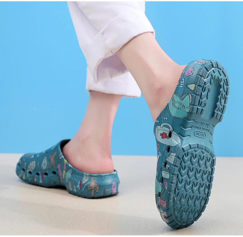 Color: Grass-Green, Shoe Size: 37-38 - Medical print Nurse Clogs EVA Surgical Slippers Lightweight Non-slip Doctor Scrub Clogs Dental Pet Clinic Nursing Clogs Y07-1