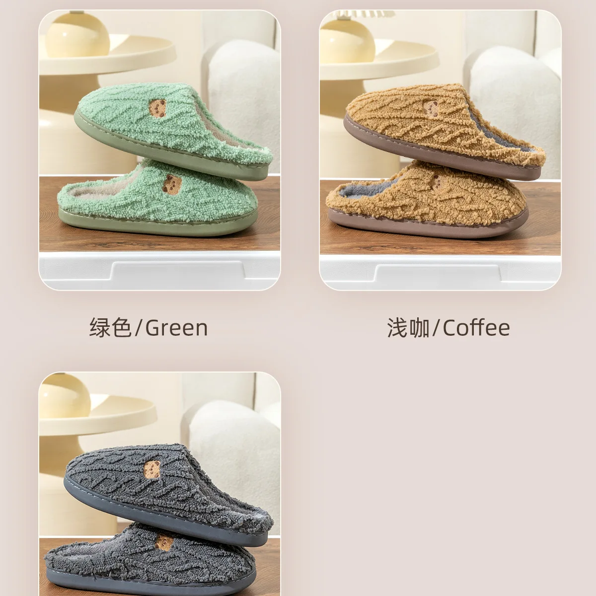 Color: Grass-Green, Shoe Size: 40-41, Ships From: CHINA - Asgard Women Winter Fur Slippers Indoor Fluffy Couple Bedroom Flat Slides Cute Bear Women Fuzzy House Slippers Warm Cotton Shoes