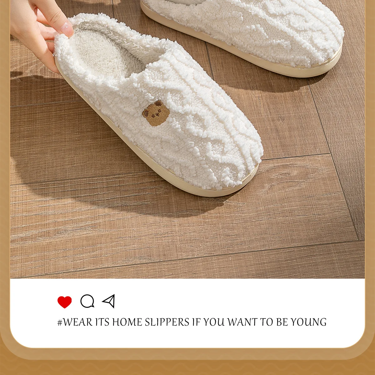 Asgard Women Winter Fur Slippers Indoor Fluffy Couple Bedroom Flat Slides Cute Bear Women Fuzzy House Slippers Warm Cotton Shoes