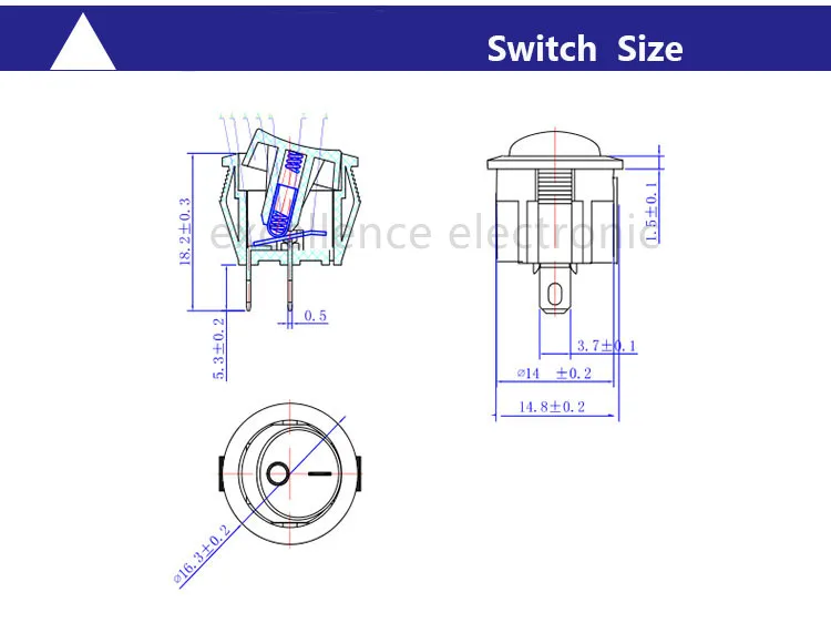 Pin: 2 (ON-OFF)/3(ON-OFF)/2 (ON-OFF-ON)