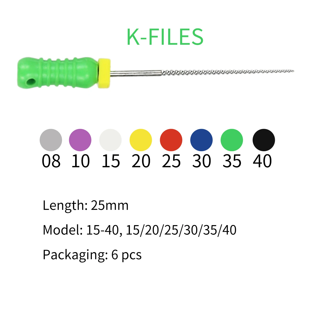 Color: GRAY - 6Pcs/Pack Dental Tools Root Cannal Endo K File 21mm 25mm Stainless Steel Endodontic Instruments Dentist Dentistry Odontologia