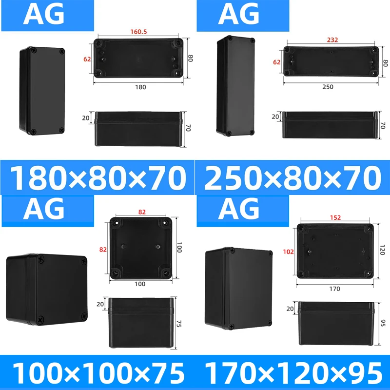 Color: GRAY - Black plastic waterproof wire junction box power supply outdoor security monitoring open-mounted waterproof box abs plastic shel