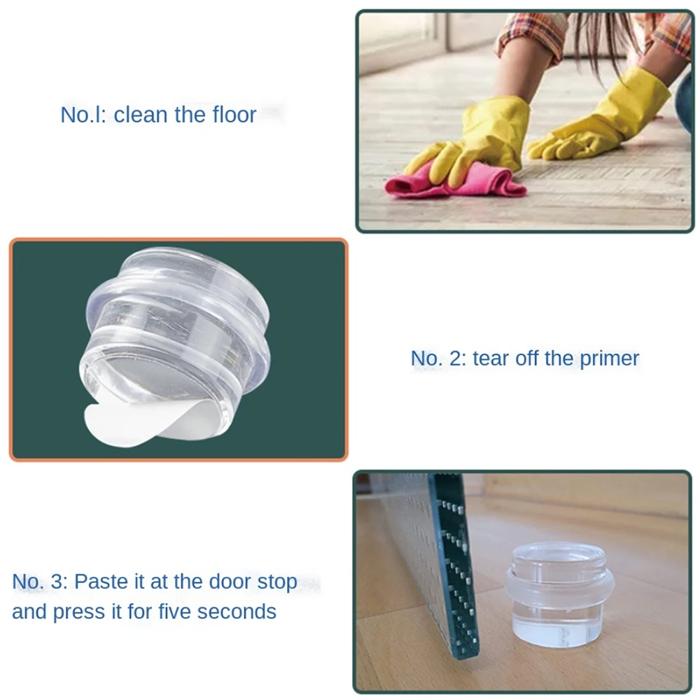 Color: GRAY - Door Stop Transparent Acrylic Cylindrical Anti-Collision Buffer To Protect Walls And Furniture Self Adhesive Floor Door Stopper