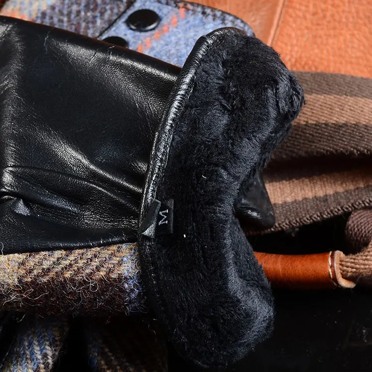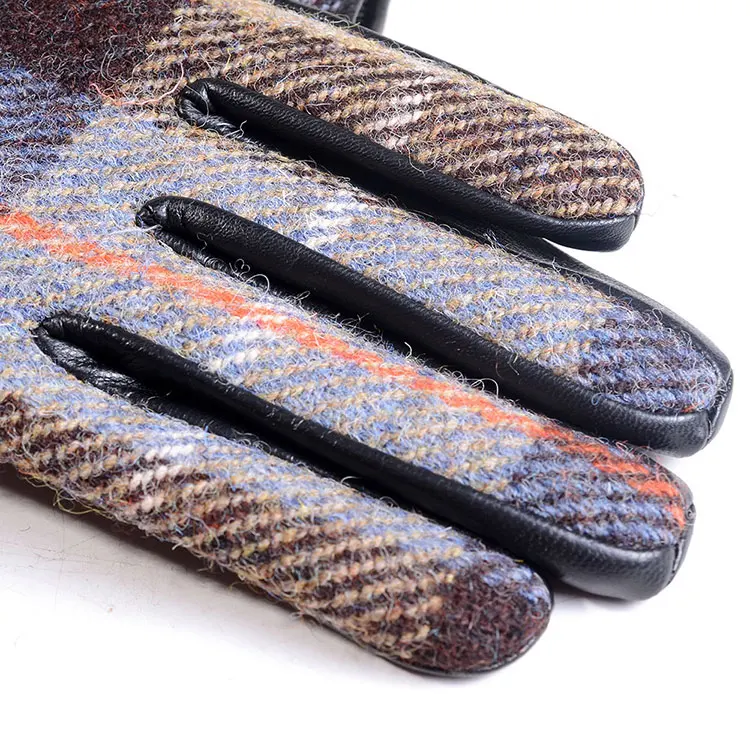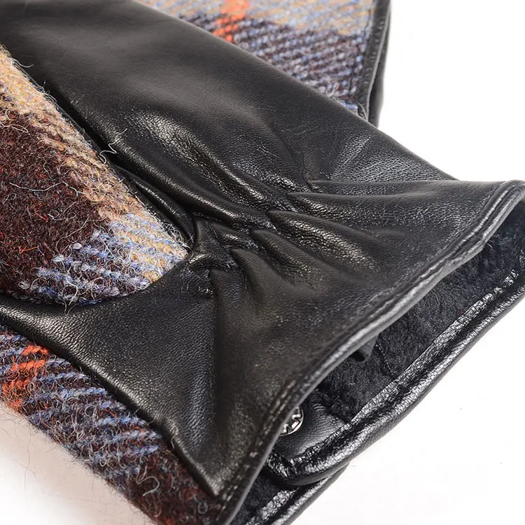 Color: GRAY, Gloves Size: L - New Men's Male Wool Tweed & Leather Winter Warm Thicker Lining fashion Touch Screen Driving Short Gloves