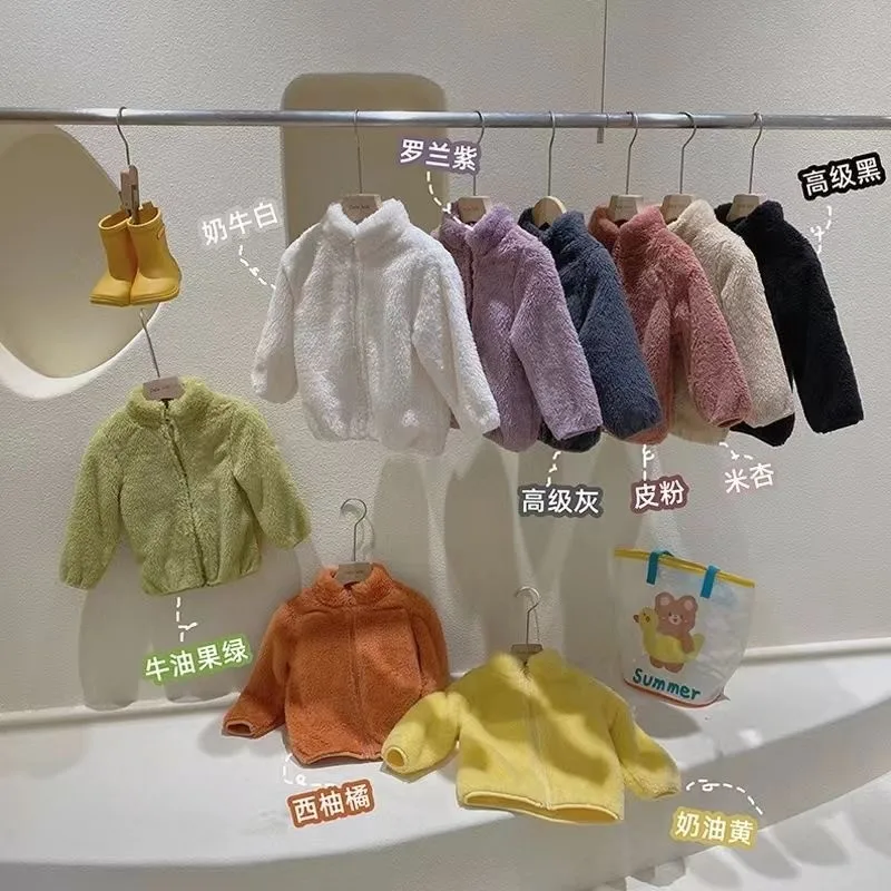 Color: GRAY, Kid Size: 9M - Child Autumn Winter Costume Solid Color Outerwear Casual Loose Long Sleeve Tops Plush Jacket Boys Girls Fashion Simple Coats