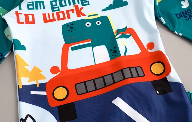 Color: GRAY, Kid Size: newborn - Children Swimsuit Kids Boys Girls Swimwear Children Surfing Wear Sunscreen Quick Dry Swimwear Car Cartoon Swimsuit Beach Wear