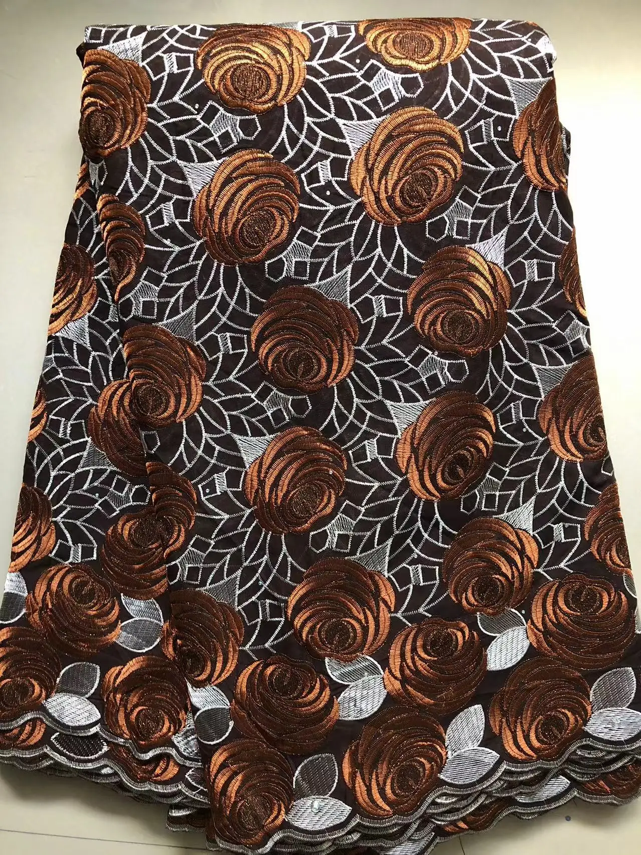 Color: GRAY, length: 5 yards, Width: 120cm - Wholesale Cotton African Lace Fabric 2024 High Quality Swiss Voile Lace Fabric Nigerian Dry Lace Fabrics With Stones For Wedding
