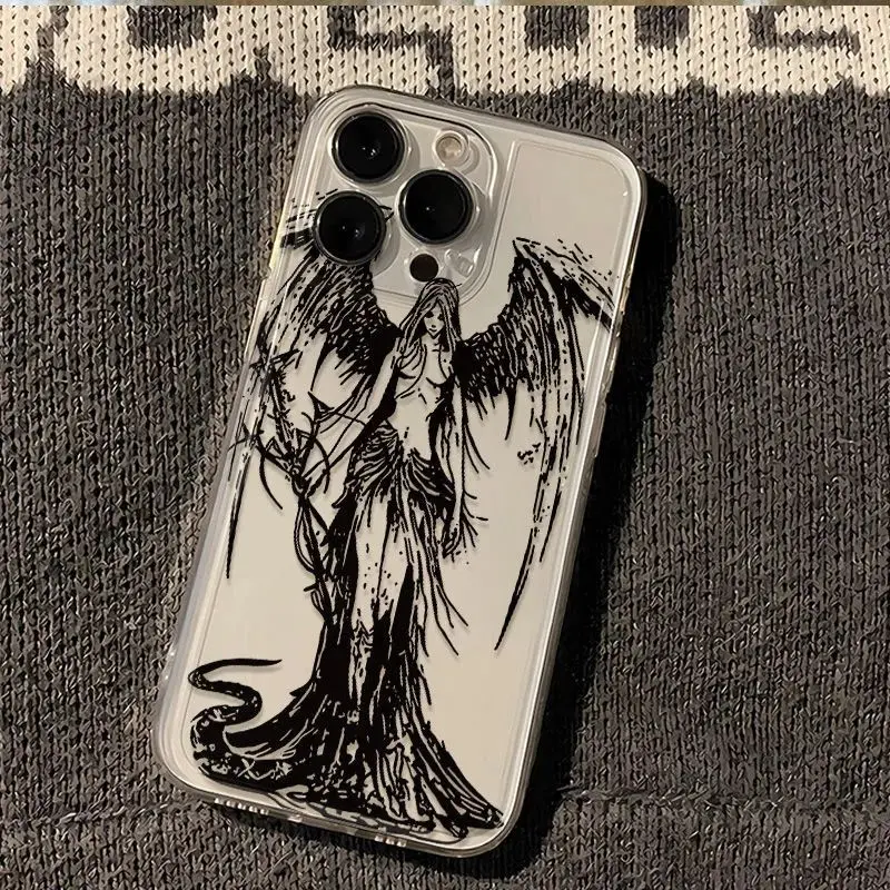 Color: GRAY, Material: artificial leather - luxury bloodsacrifice Black Angel Death demon Phone Case For iPhone 15 14 13 12 11 Mini Pro Max XR XSMax 7 8 Plus SE Clear Cover
