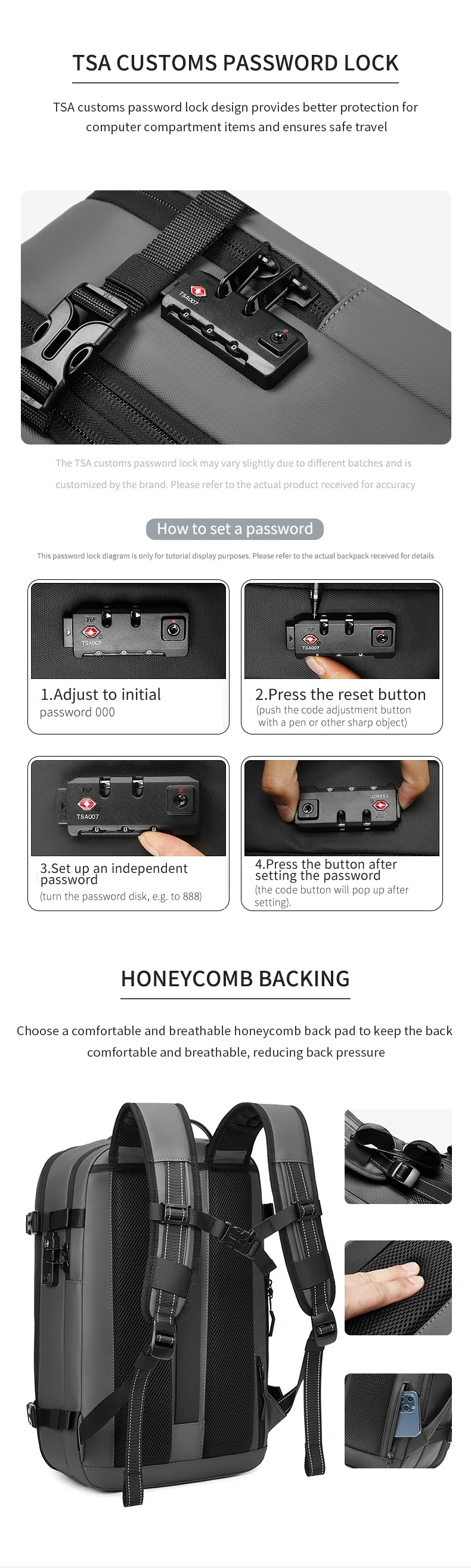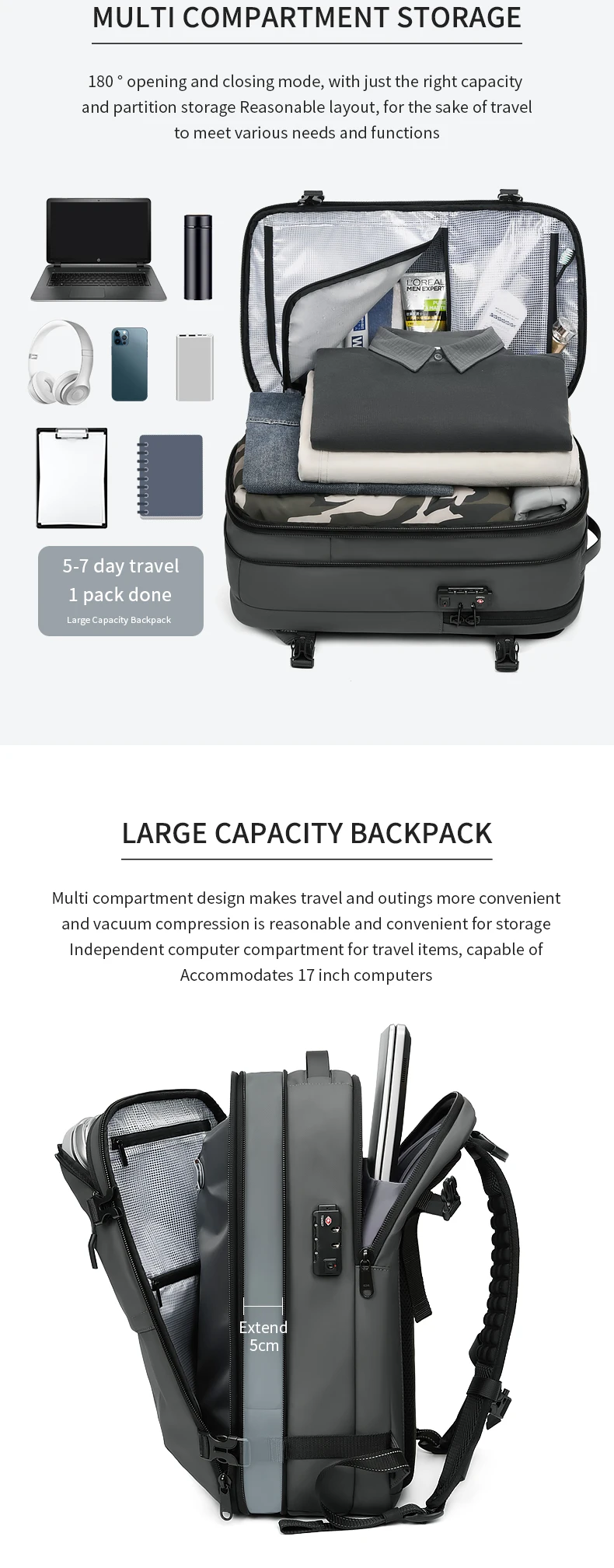 Color: GRAY - Men Travel Backpack vacuum compression 17 inch Laptop Backpack Business Large Capacity school Backpack Expanded Hiking backpack