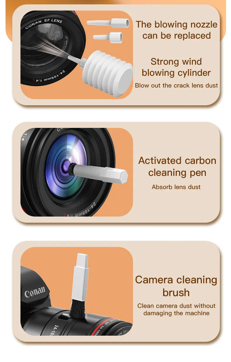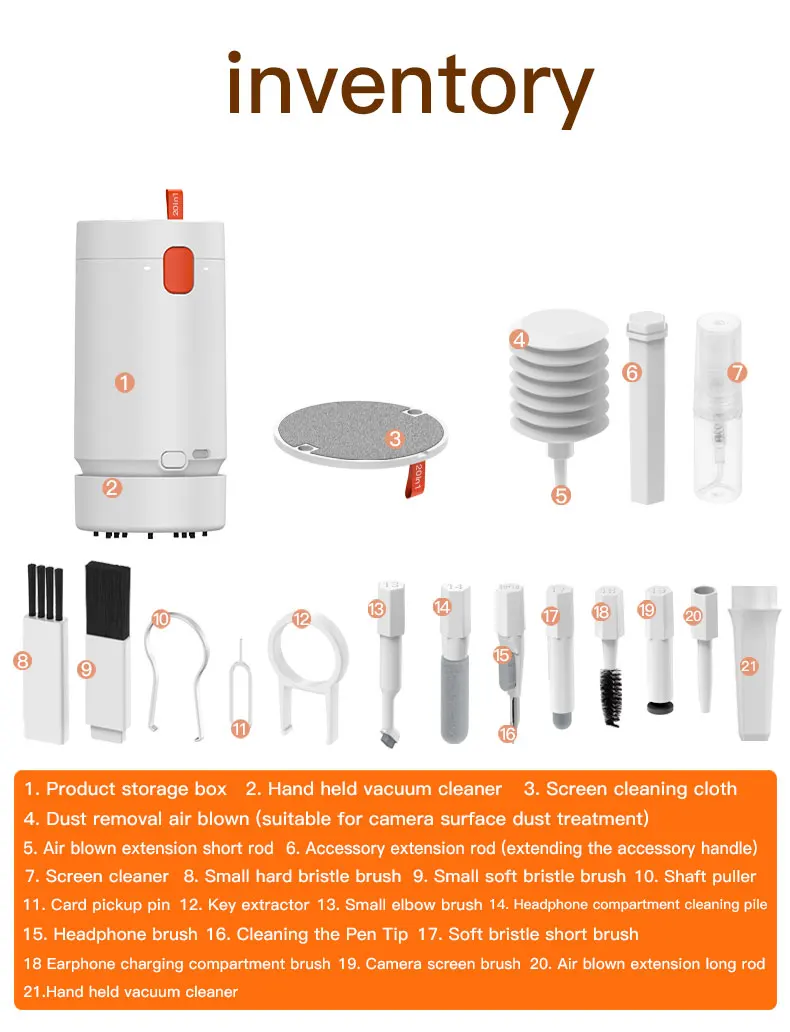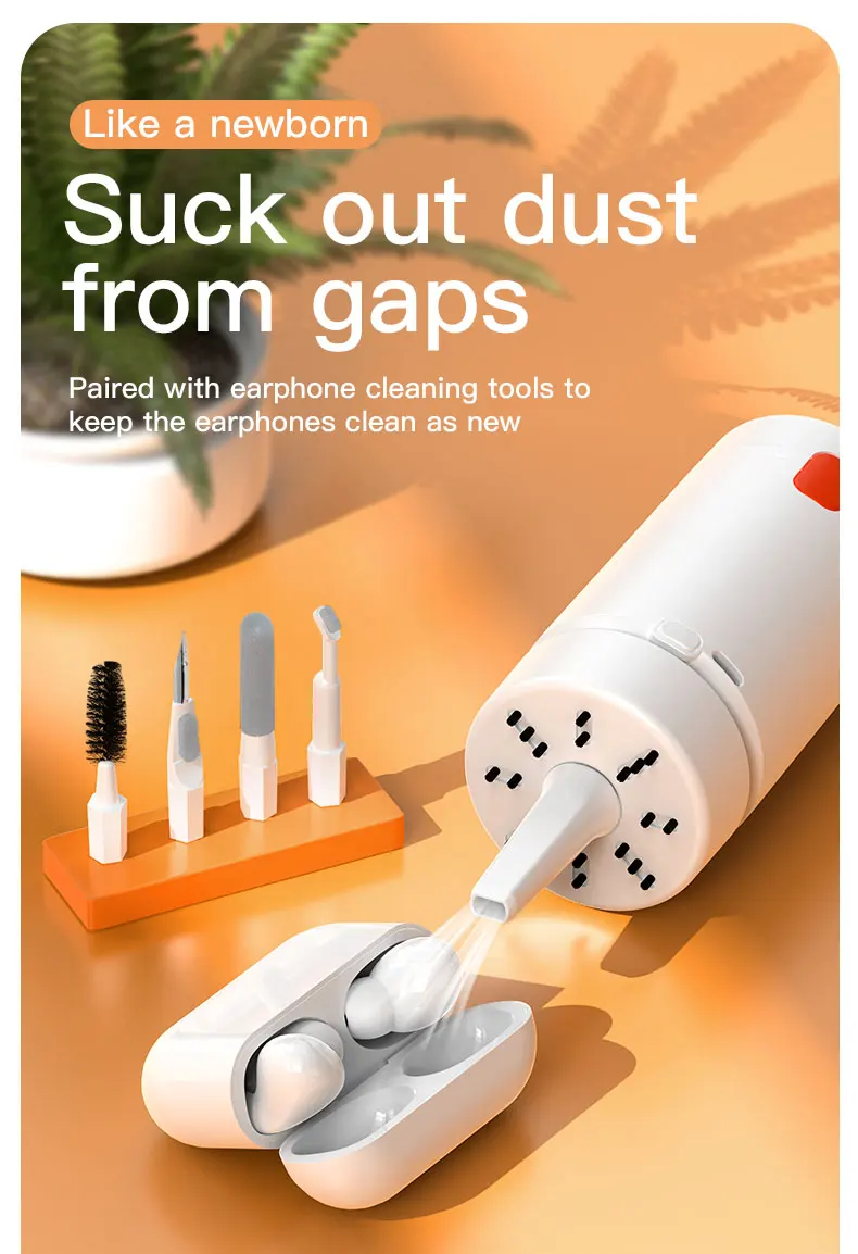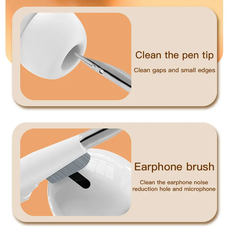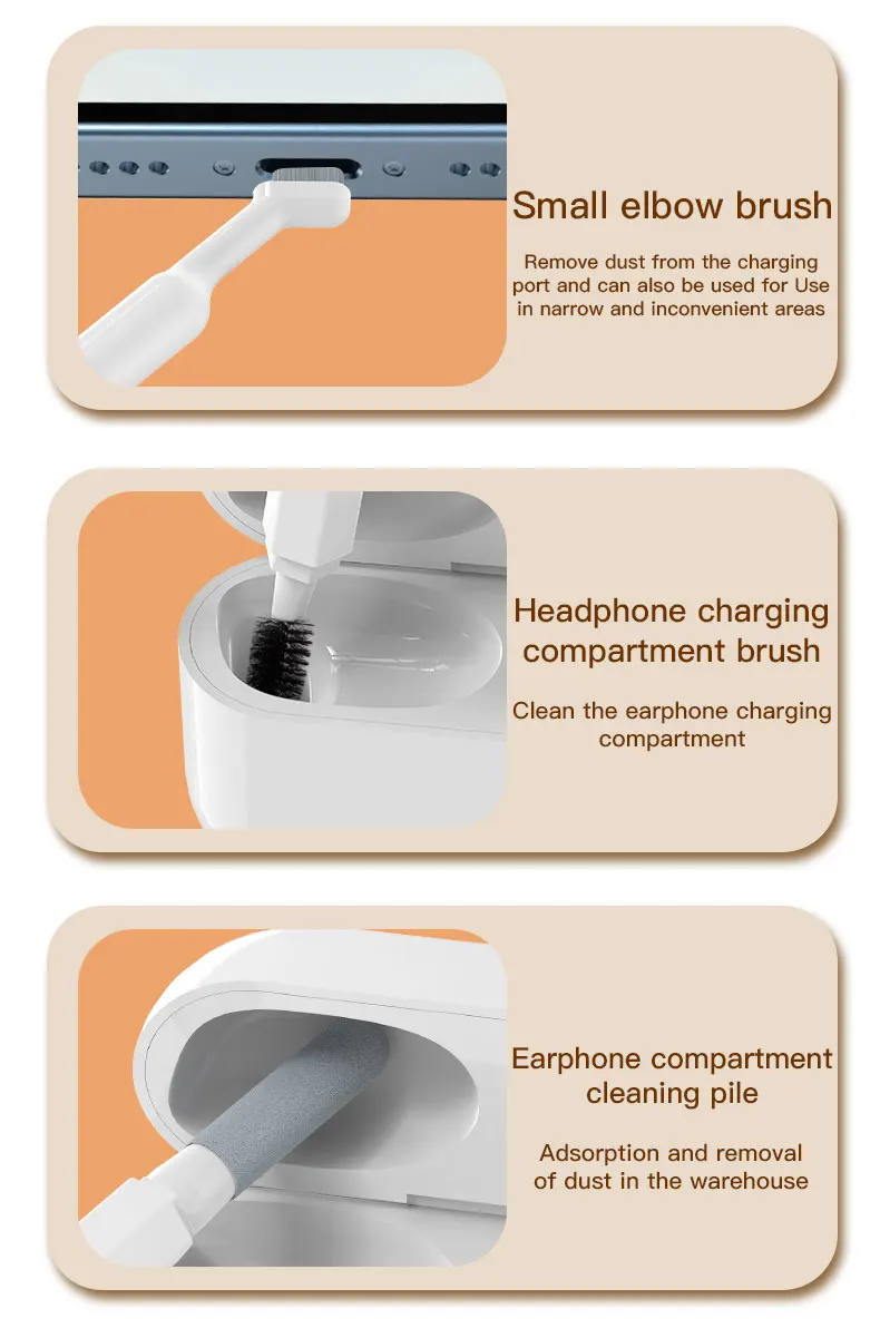 2. Powerful Function: The silicone tip can remove stubborn stains in the crevices of earphones, buttons and other items. The high-density brush removes dirt and dust from the headphone sound hole. The flocking sponge removes dust inside the earphone charging case. Flannel wipes are used for cleaning large dusty areas such as keyboards, desks, window rails, and more.