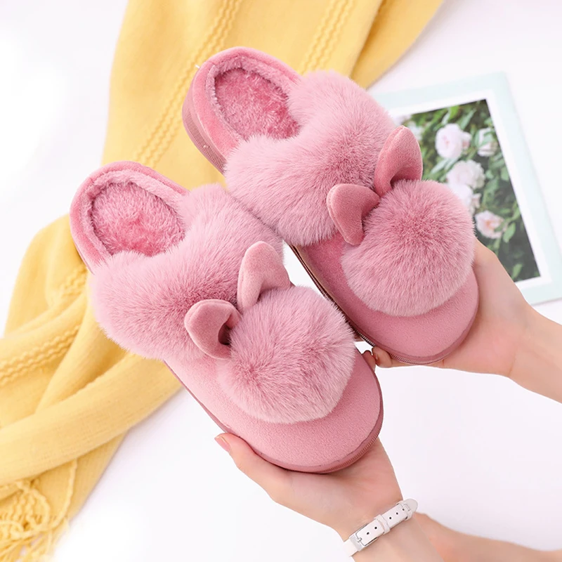 Color: GRAY, Shoe Size: 33.5 - Women Home Slippers Indoor Bedroom Light Couple Slipper Solid Soft Flip Flops Winter Warm Furry Plush Shoes