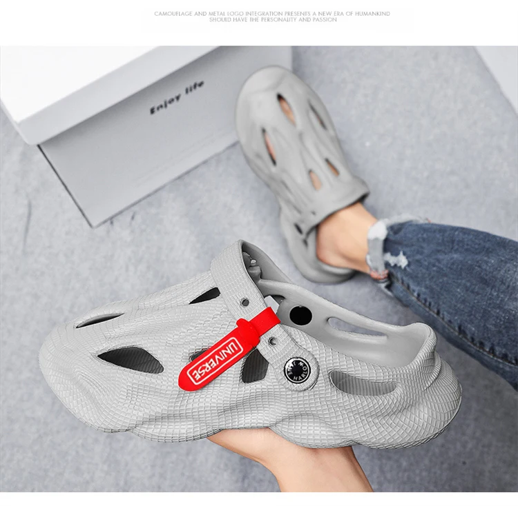 Color: GRAY, Shoe Size: 44 - Summer Men's Clogs Sandals Lightweight Breathable Anti-slip Beach Slippers Men Outdoor Slippers Clogs Anti-slip Beach Slippers