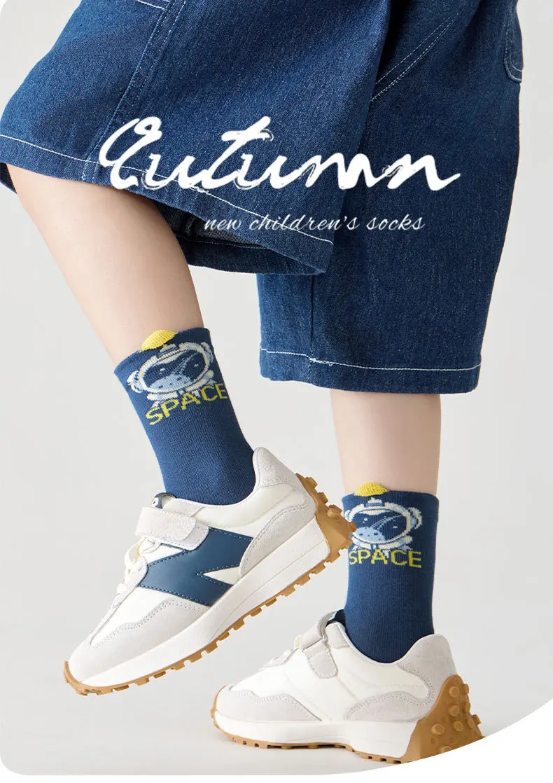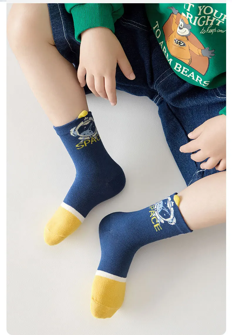 Color: GRAY, Size: 4-6T - 5 Pairs Socks Boys' Cartoon Astronaut Pattern Cotton Socks Children's Spring Autumn Calf Socks Baby Girls Socks