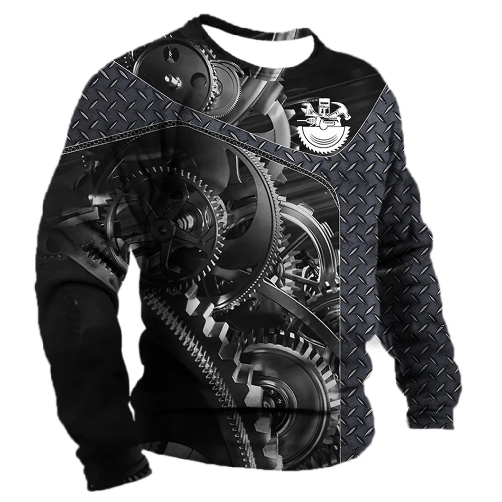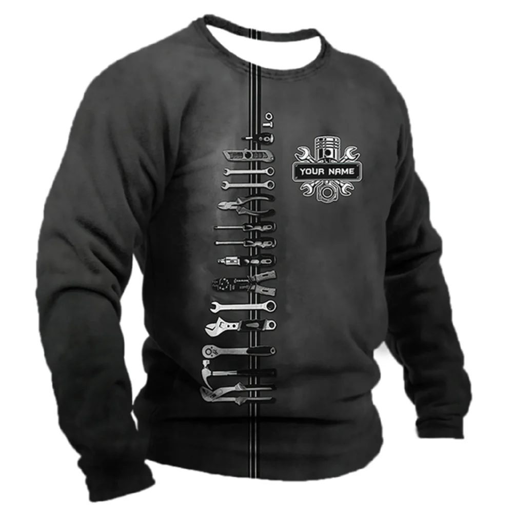 Color: GRAY, Size: 5XL - Men's T -shirt Retro T -shirt Summer clothing personalized name Mechanic mechanic 3D printing 5xl sports shirt long -sleeved