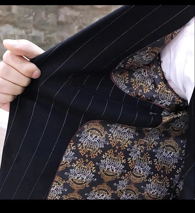Color: GRAY, Size: L - Gray Men Classic Striped/Checked Suits, Business Office 3 Piece, Asian Size Slim Fit Men Dress Jacket & Pants with Vest, S-4XL