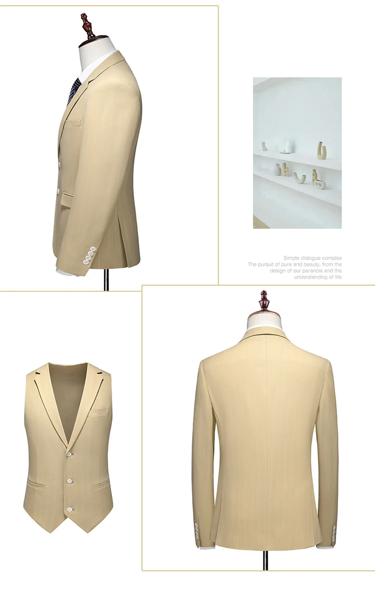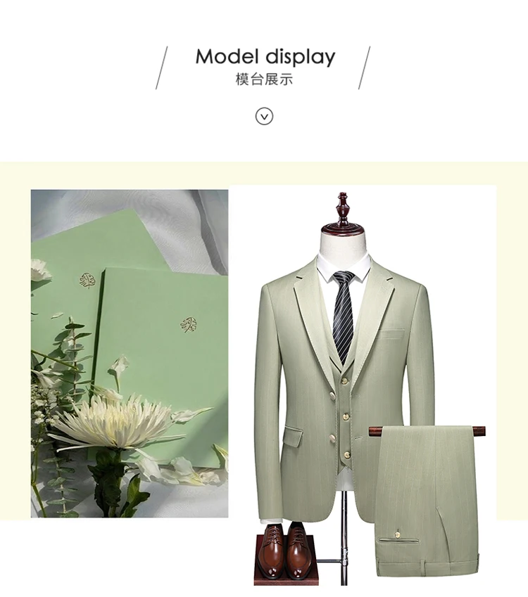 Color: GRAY, Size: L - High-End Three-Piece Men's Wedding Suit with Vest And Trousers Fashion Business Casual Groom's Dress All-In-One