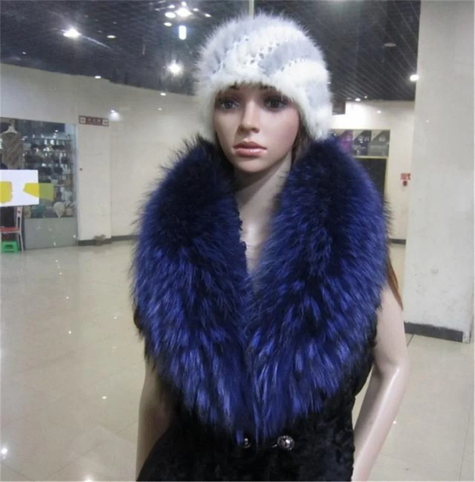 Color: GRAY, Size: L - Real Raccoon Fur Scarves Woman 100% Pure Natural Raccoon Fur Collar Warm Winter Scarves Red Fox Fur Collar L#1