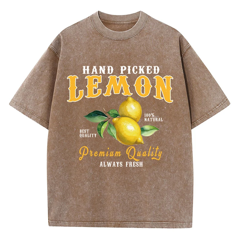 Color: GRAY, Size: M - Summer Lemon Washed T-Shirts Womens Cotton Oversized O-Neck T Shirts Fresh Fruit Prints Tops Casual Short Sleeve Woman Clothes