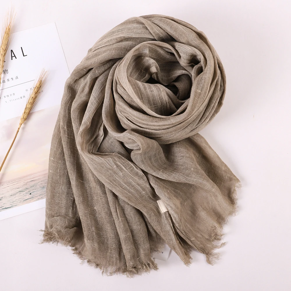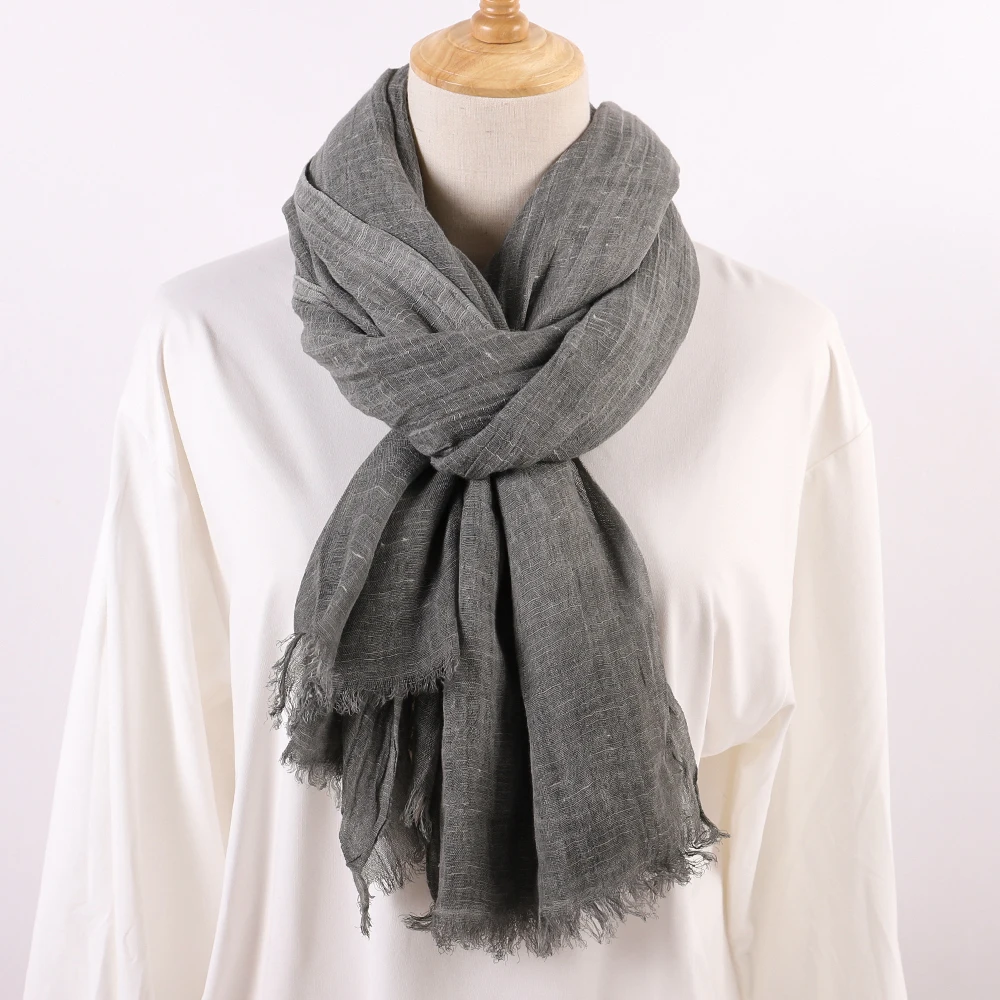 Color: GRAY, Size: One Size - Fashion New Cotton Pashmina Plain Shawls Women Solid Color Scarf Wraps Scarves Kerchief Muslim Hijab Lady Autumn Winter Warm