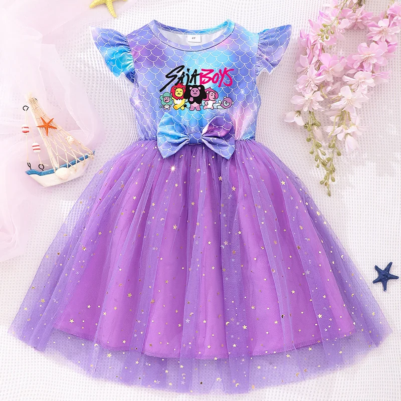 Color: GRAY, Size: One Size, Ships From: CHINA, Height: 176 - KPop Demon Hunter Christmas Princess Dress Girl Fashion Casual Autumn Butterfly Dress Wedding Birthday Party Dress Gift Clothes