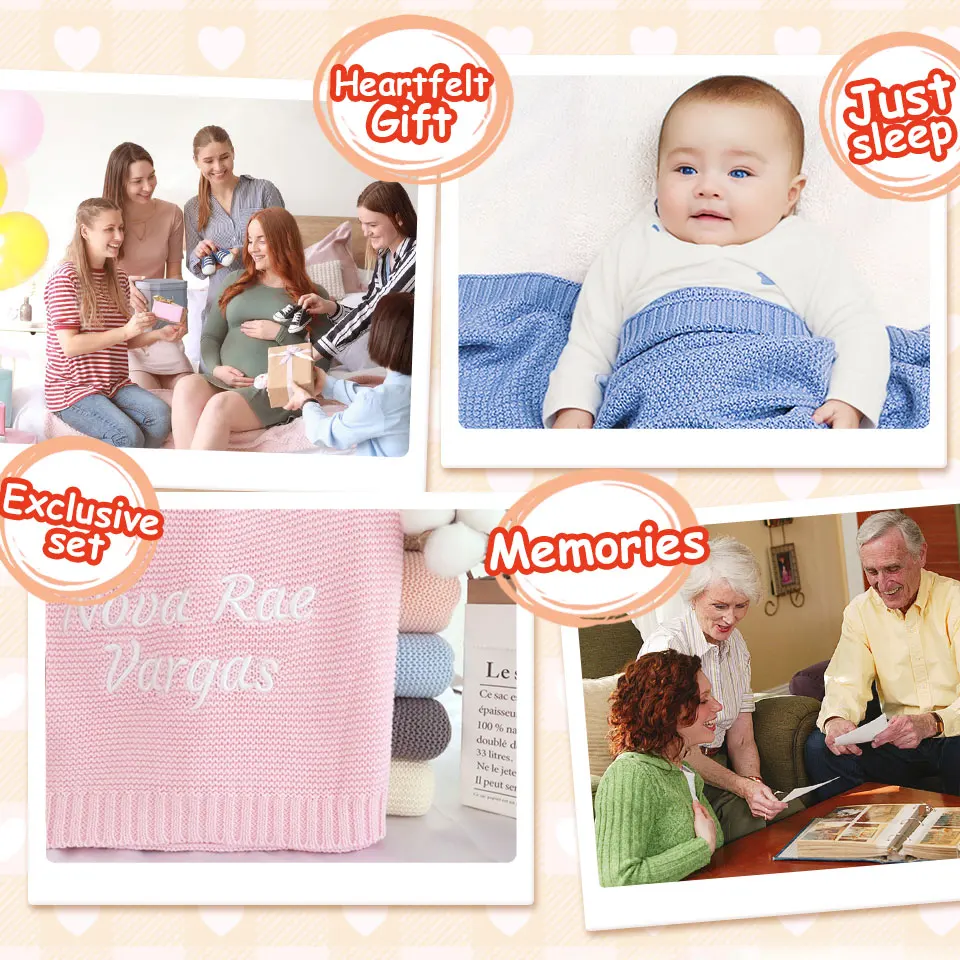 Color: GRAY, Size: Option 1, Ships From: CN - Personalized Baby Name Newborn Cotton Beanie and Knitted Blanket Set Embroidered Name Covering and Cute Hat Gift Set
