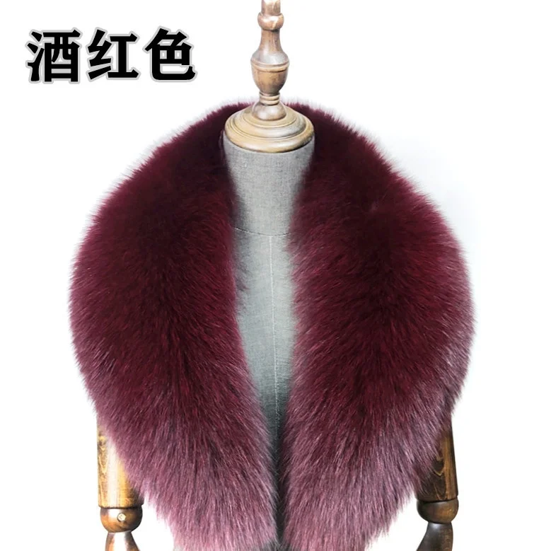 Fox Fur Collar 100% Real Fox Fur Scarf Straight Collar Natural Fur Gray Collar Large Size Neck Warmer Fur Scarf Shawls