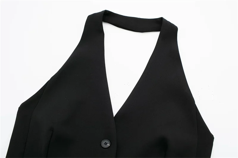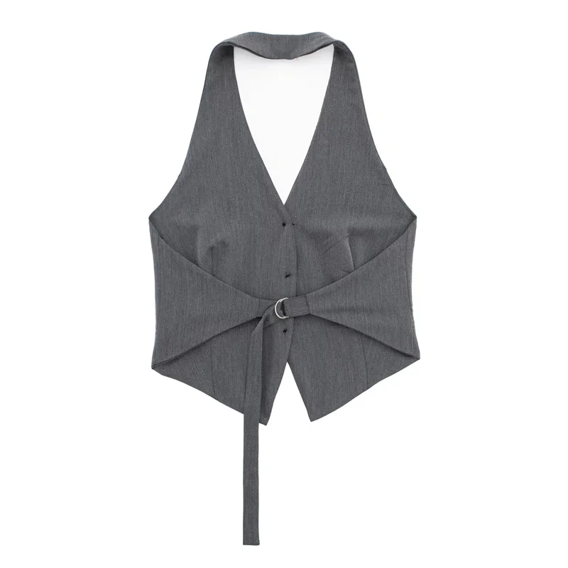 Color: GRAY, Size: S - MUJER Off Shoulder Sleeveless Vest Women Black White Cropped Vest Woman Fashion Backless V Neck Short Coats Summer Waistcoat