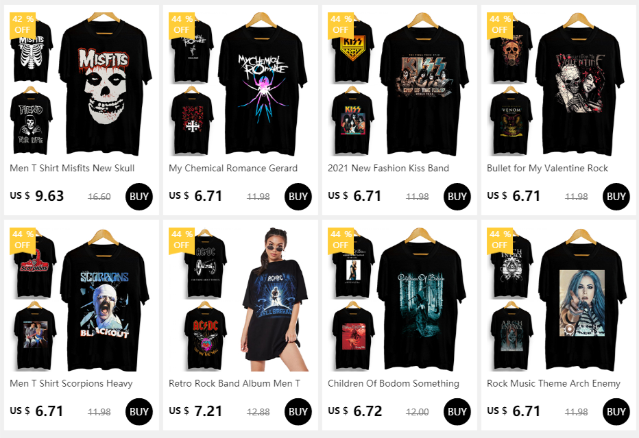 Color: GRAY, Size: XXL - Men Clothes Round Neck T-shirt Heavy Metal Band Rock Cotton Breathable Print Womens Plus Size Tees