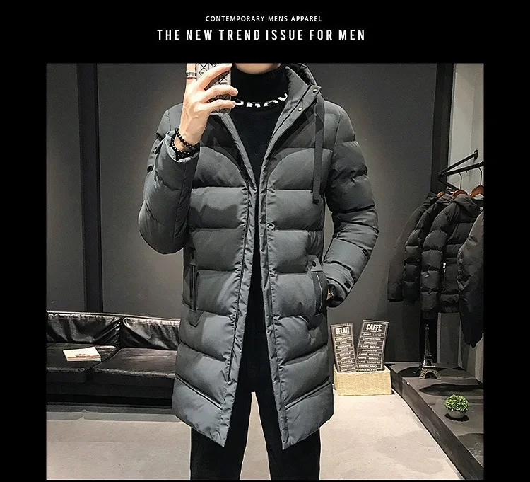 Color: GRAY, Size: XXXL - Men Long Down Jackets Winter Coats Chaquetas Hooded Casual Winter Parkas High Quality Male Green Warm Parkas Coats Size 8XL