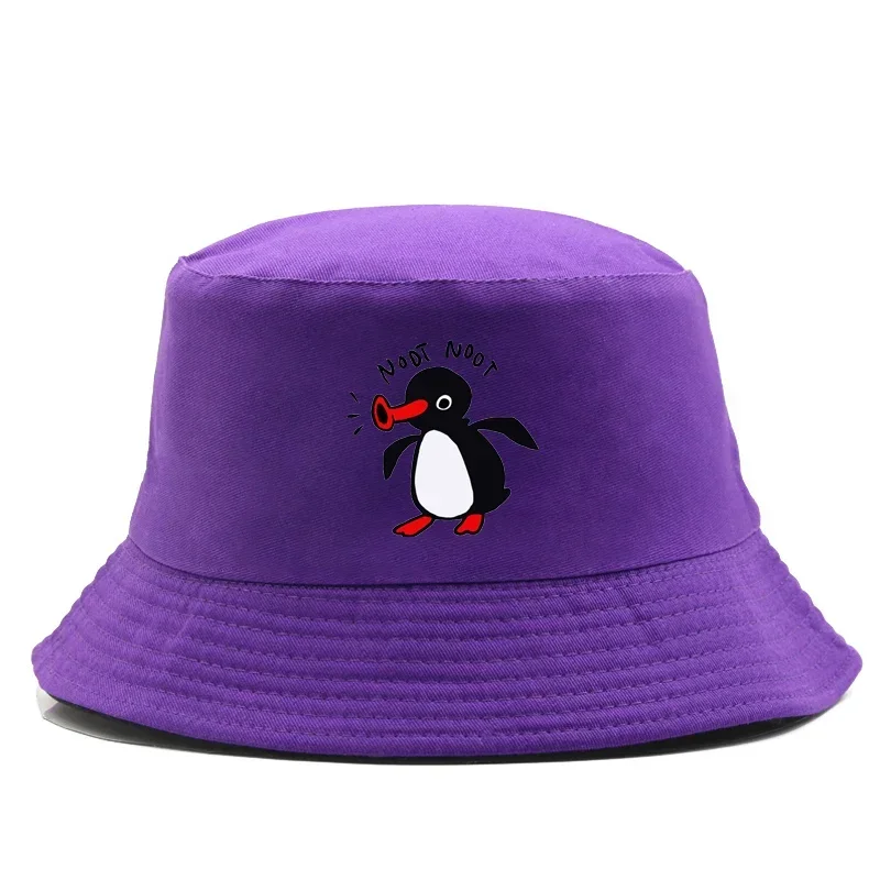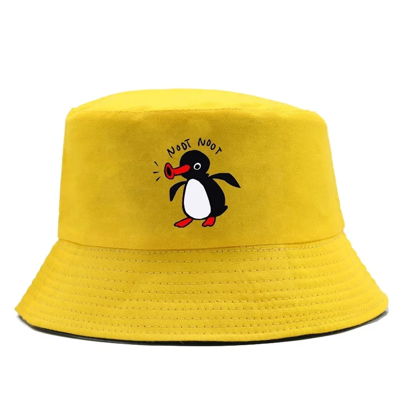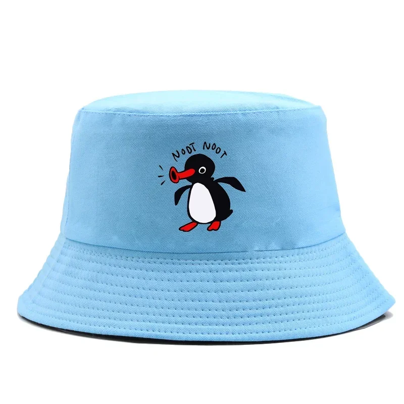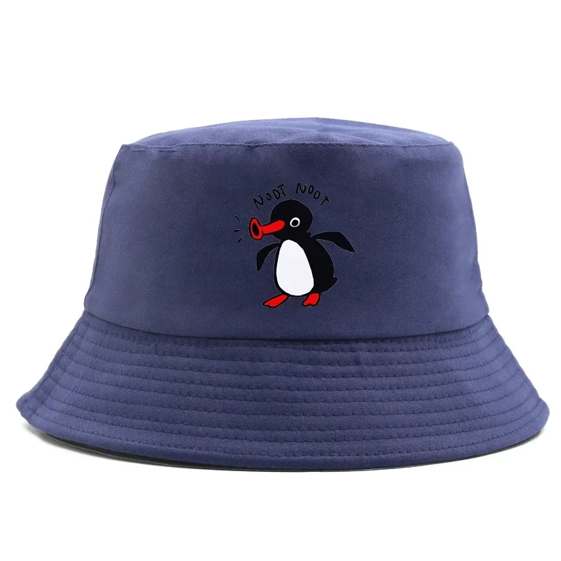 Color: GRAY - Summer Penguin Bucket Hat Reversible Bob Men Women Cotton Travel Beach Fisherman Hat Outdoor Sports Pull Up Bob Panama Sun Hat