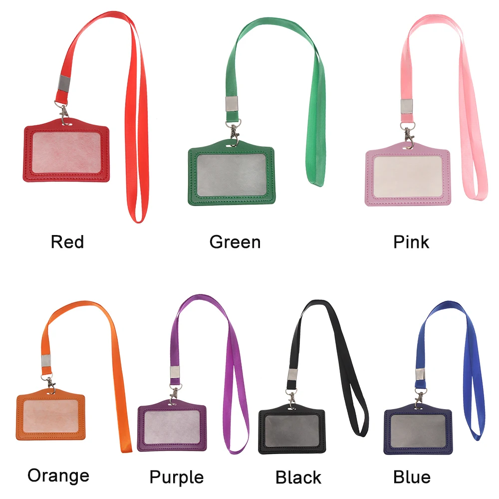 Portatarjetas de trabajo Unisex con cordón PU Tarjeta bancaria Nombre Titulares de tarjetas de crédito Portatarjetas de identificación de autobús Insignia de identidad con correa para el cuello