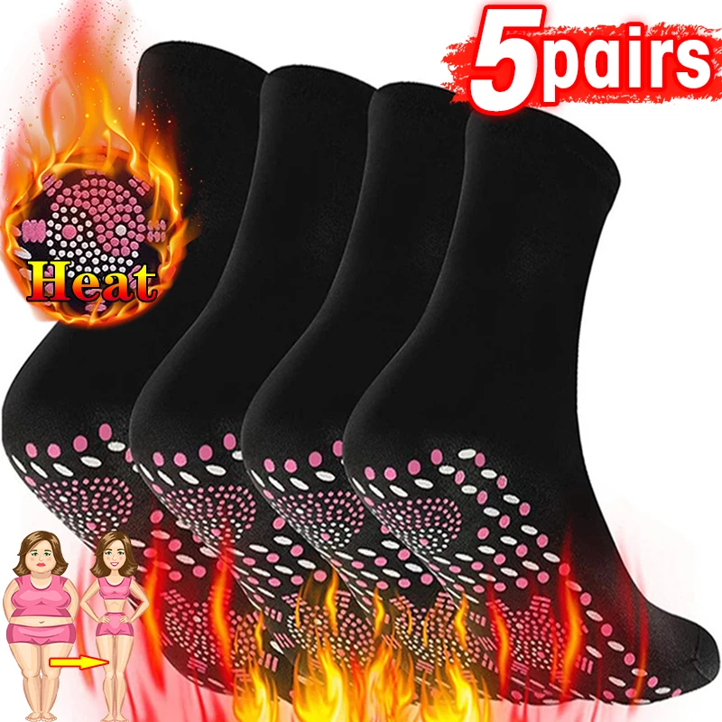 Color: green - 1/5pairs Tourmaline Self-Heating Socks Winter Warm Thermal Health Care Socks Slimming Health Short Sock Magnetic Therapy Sock