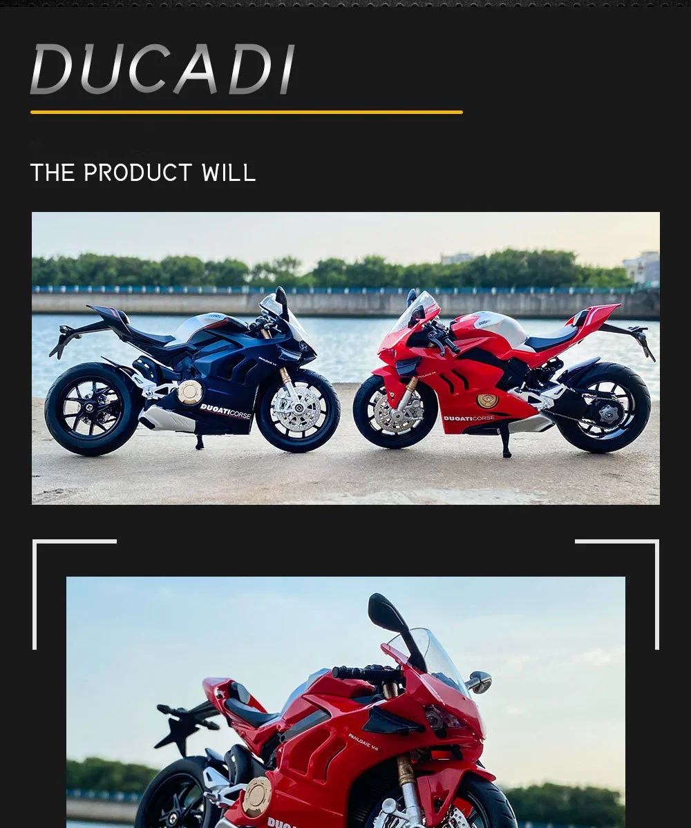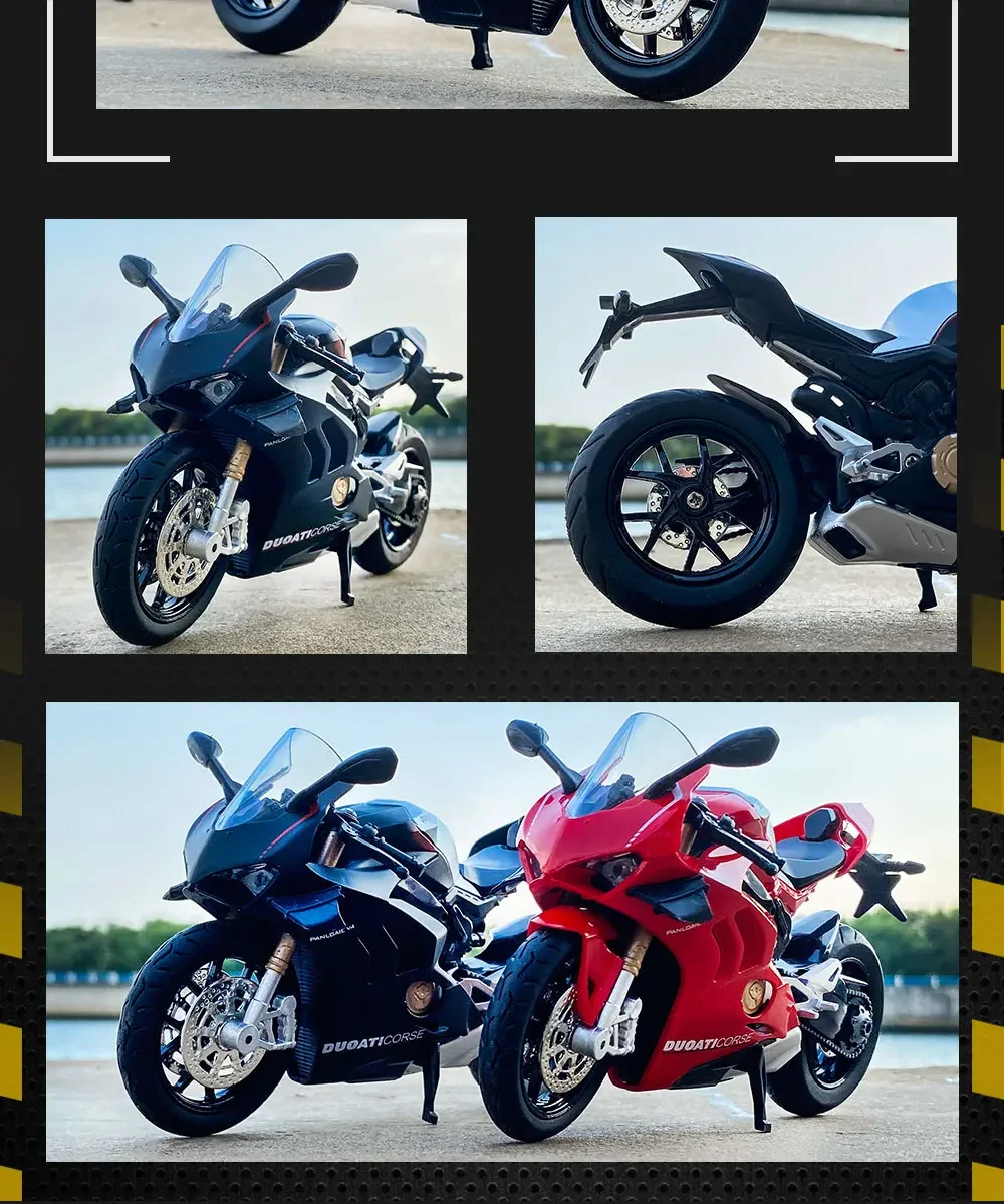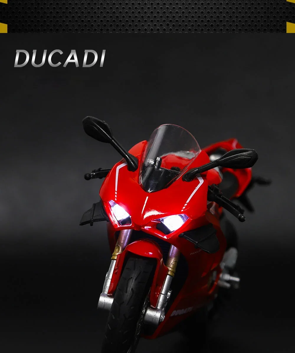 Color: green - 1:12 Ducati V4S Panigale Racing Motorcycles Simulation Alloy Motorcycle Model With Sound and Light Collection Toy Car Kid Gift