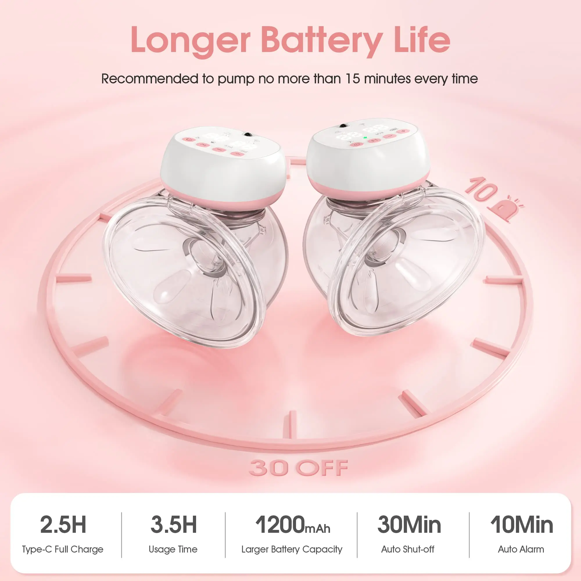 Totmizby's hands free breast pump comes with a remote control and LCD screen equipped with manual buttons and eye-protecting lights to prevent accidental touches and avoid disturbance during night pumping.We suggest that moms should pump within 15 minutes, and our breast pump will notify you with a light-up reminder at that time.