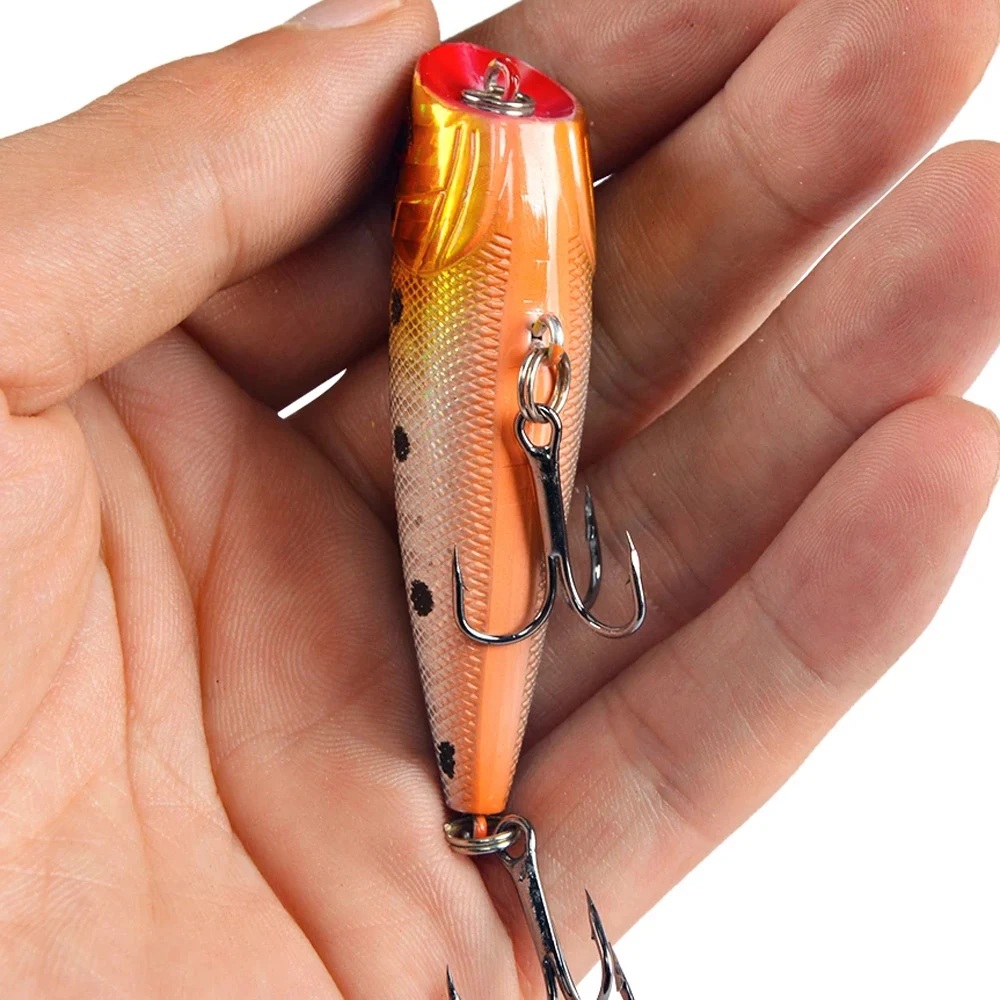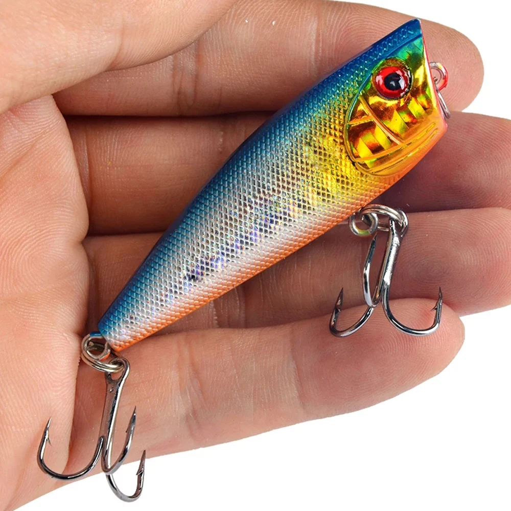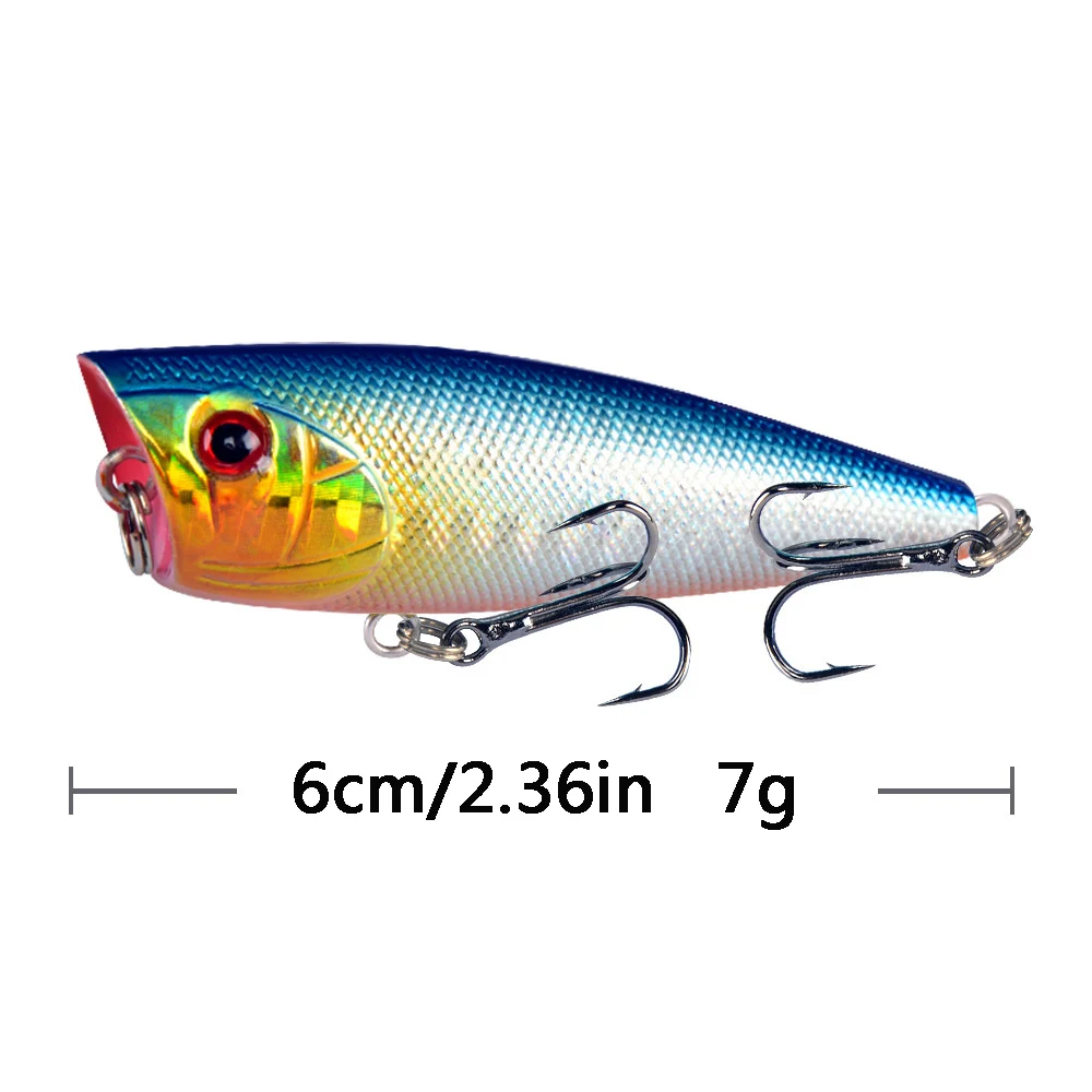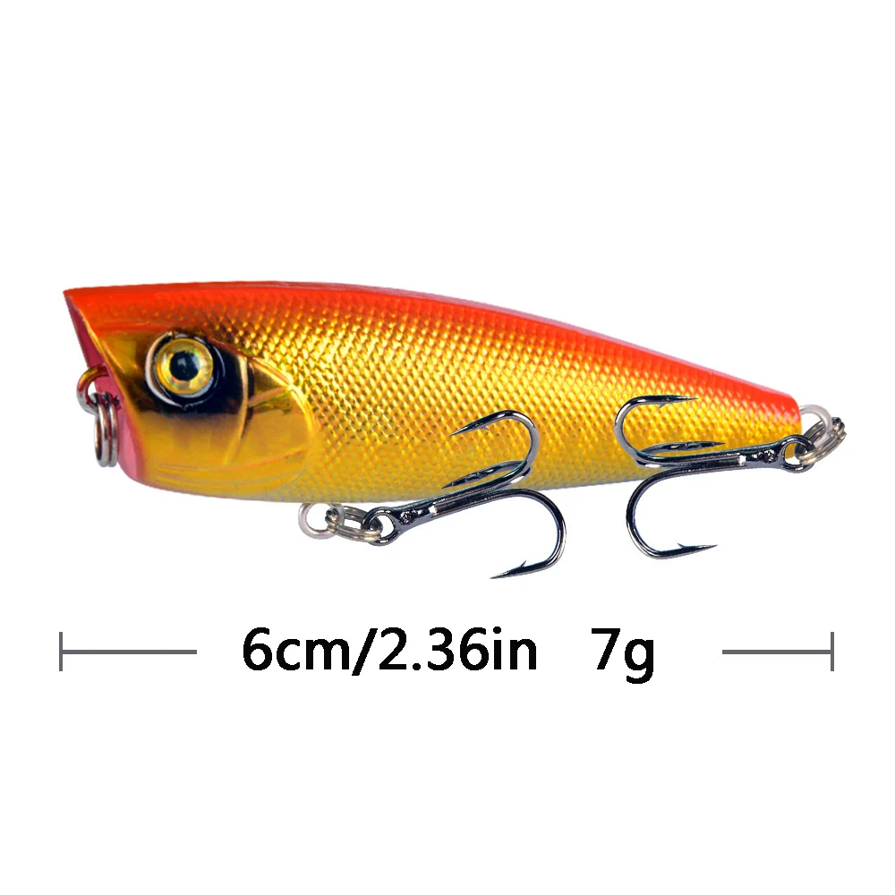 Color: Green - 1pc Popper Fishing Lure 6cm/6.5g Hard Bait Artificial Topwater Bass Trout Pike Wobbler Fishing Tackle with 2 Treble Hooks