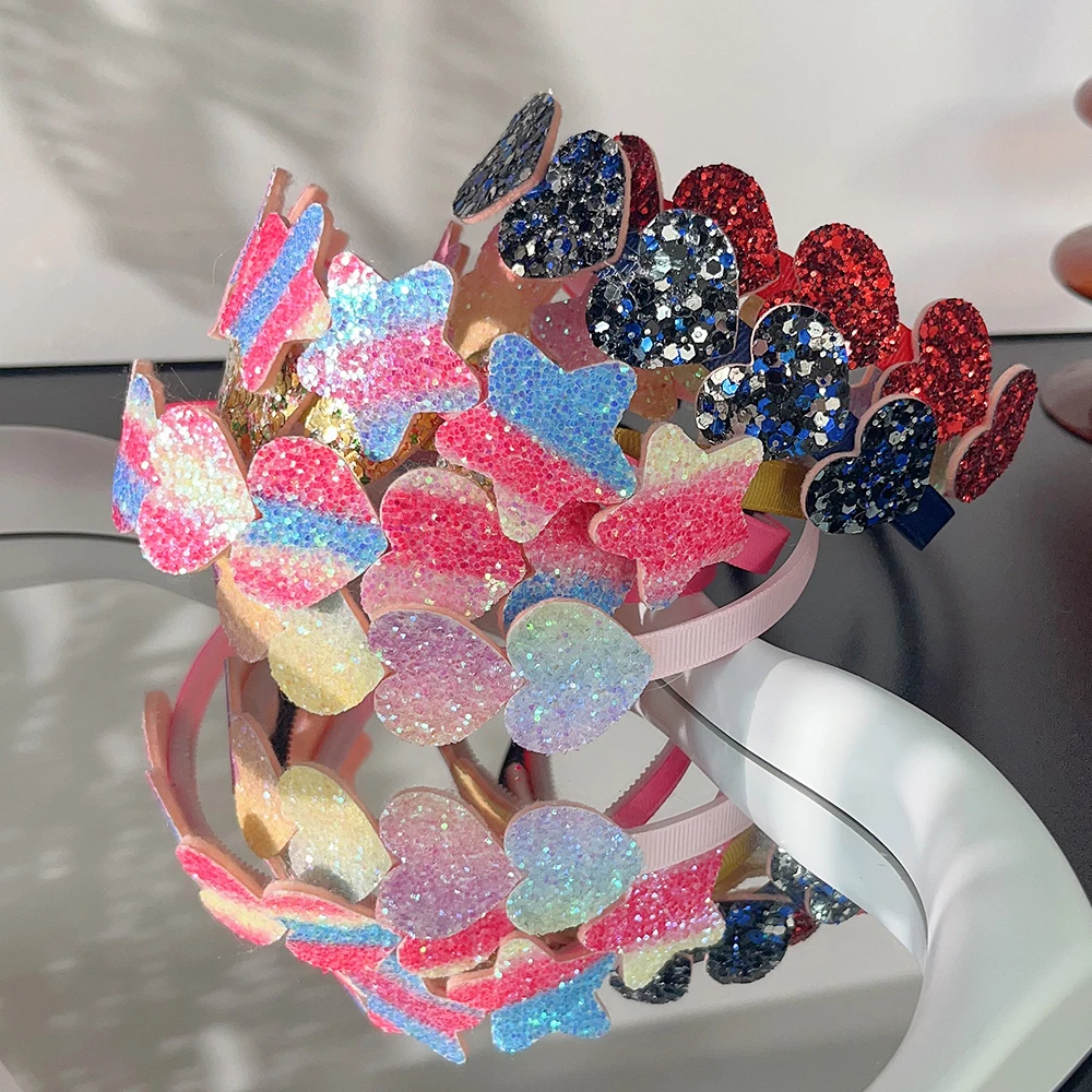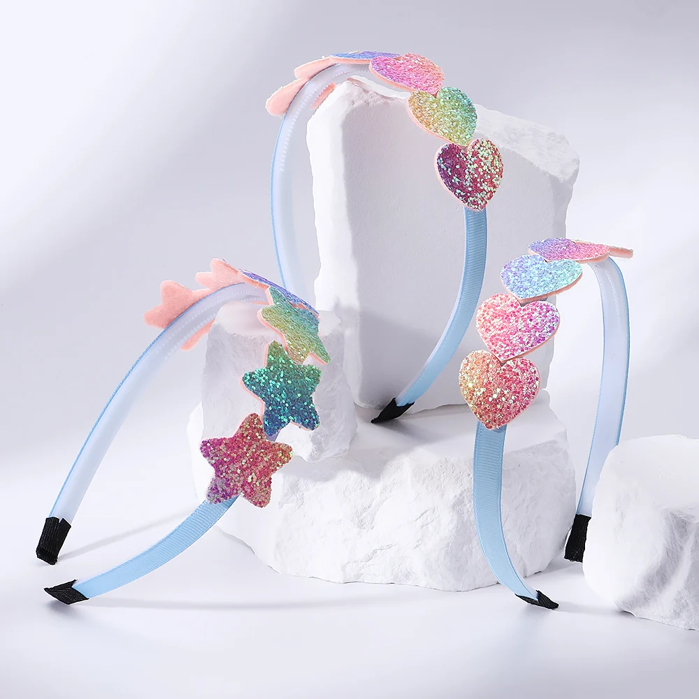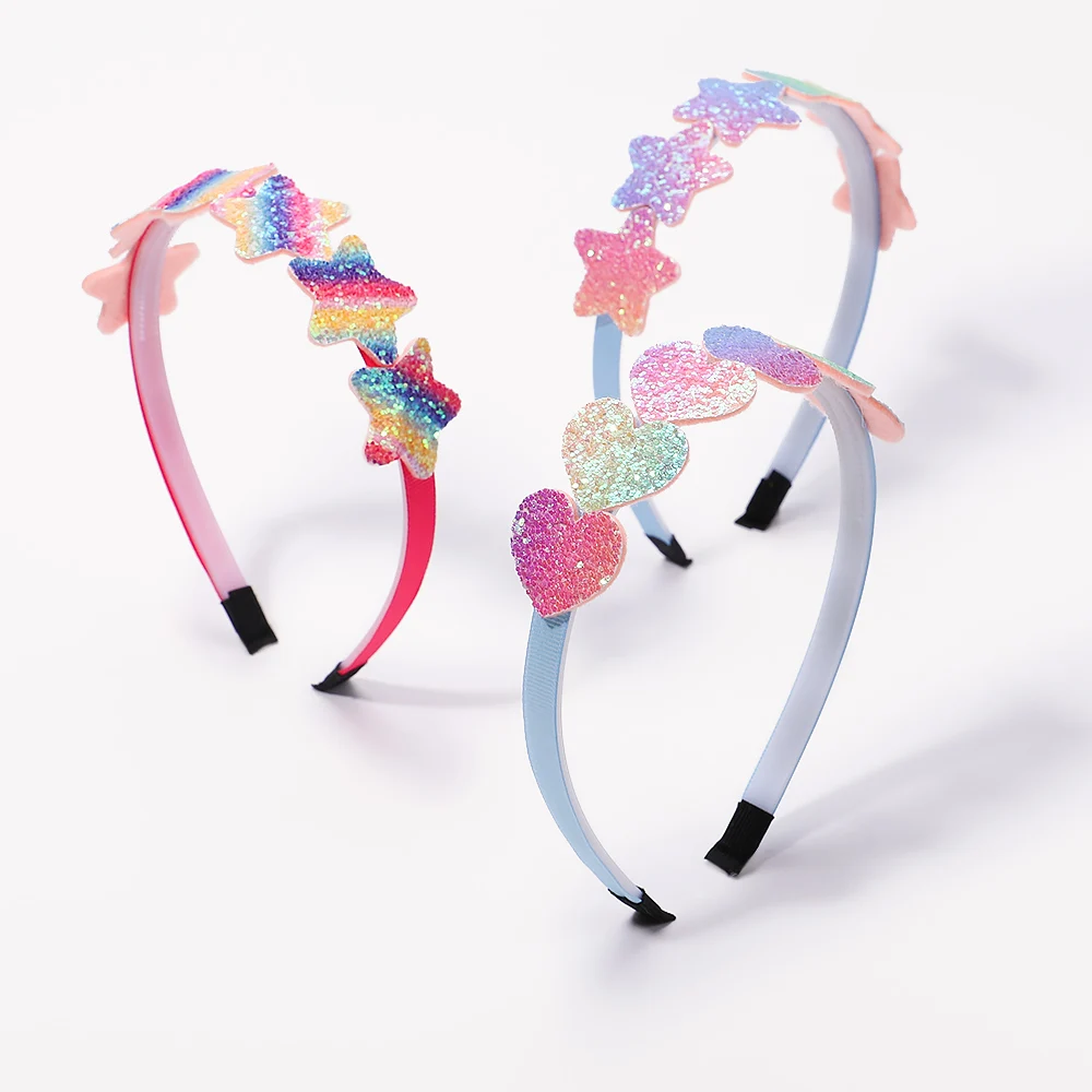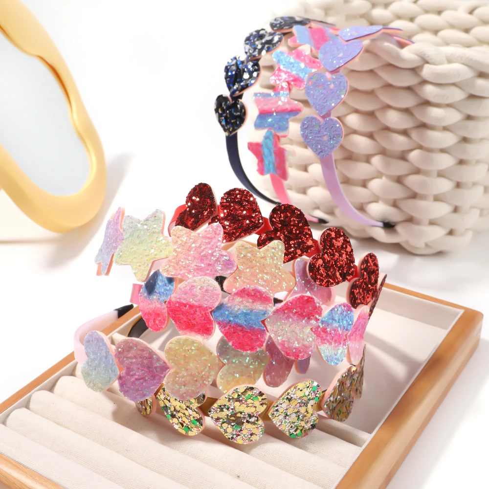 Color: green - 1pcs Fashion Glitter Kids Hair Band Lovely Bow Stars for Headband Girls Cute Colors Hair Tiaras Hairbands Hair Accessories Gifts