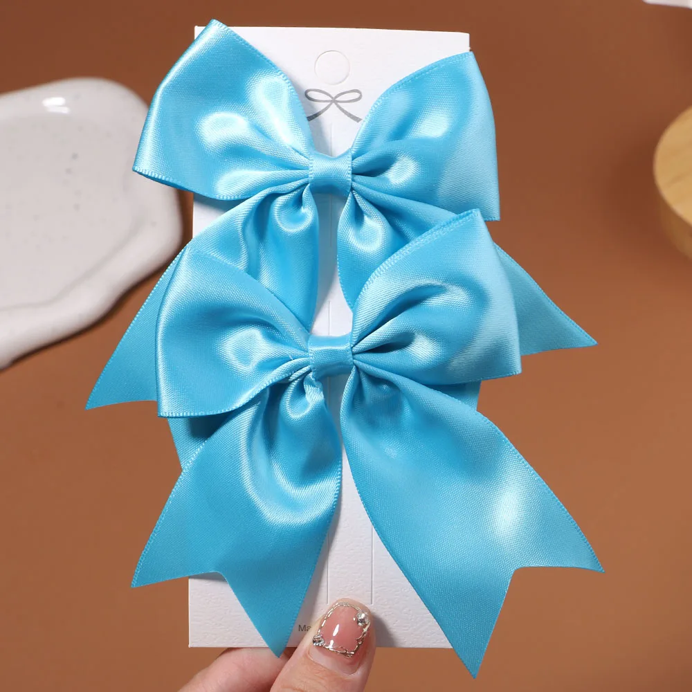 Color: Green - 2Pcs/set Delicate Ribbon Cheer Bows Hair Clip for Kids Solid Color Hairpins Barrettes Handmade Headwear Girl Hair Accessories
