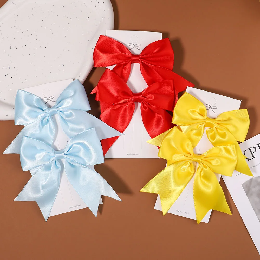 Wholesale 2Pieces 4.52InchesSolid Color Bows Hair Clip For Kids Girls Hairpins Barrettes Handmade Baby Headwear Hair Accessories