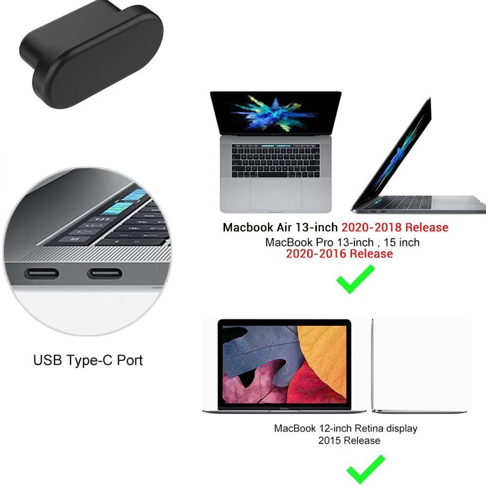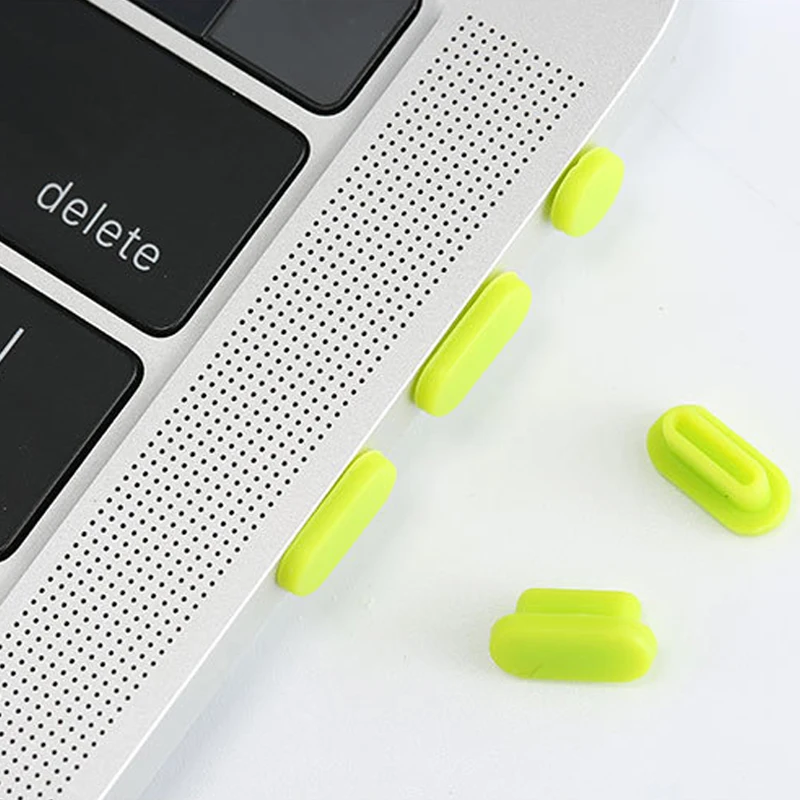 Color: green - Anti Dust Dirt Plug for MacBook Pro16 MacBook Air 13 MacBook 13 15 Pro Touch Bar Silicone Port Plugs Cover Set 5pcs/set