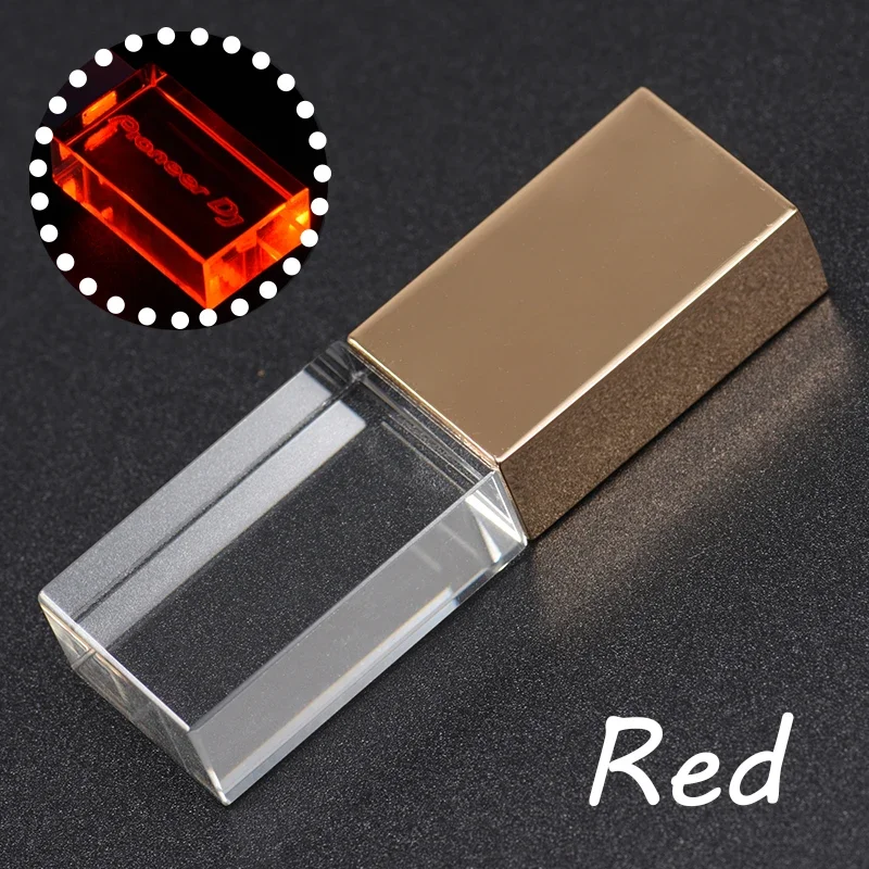 Color: green, Capacity: 64 GB - JASTER Luminous USB drive Gold Lid Crystal USB Flash Drive 128GB Pendrive 64GB Colorful LED Memory Stick 16GB with Pioneer DJ