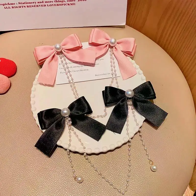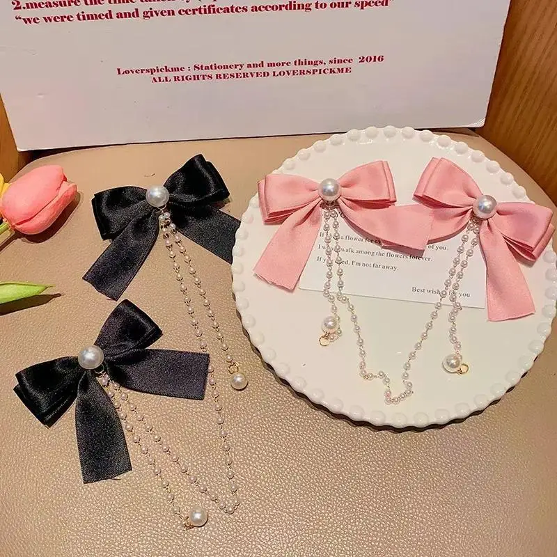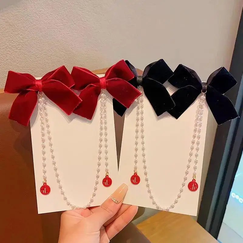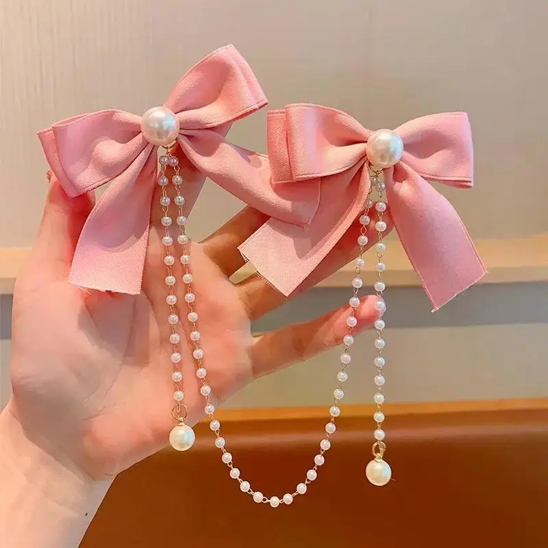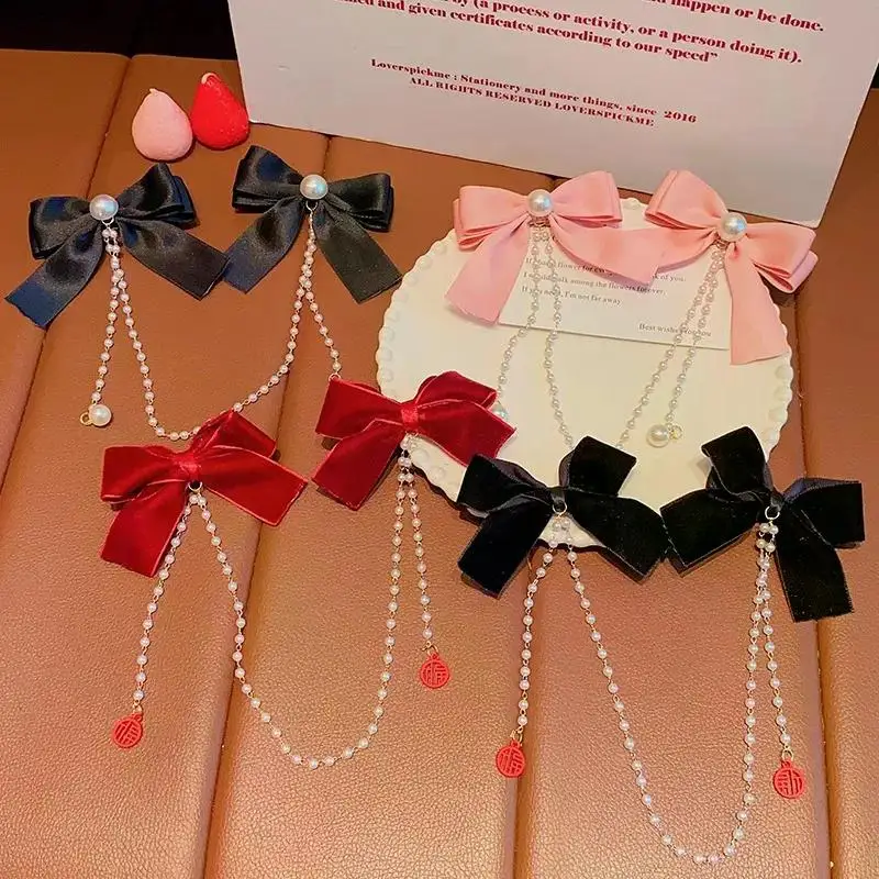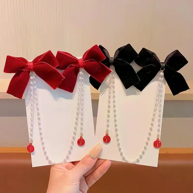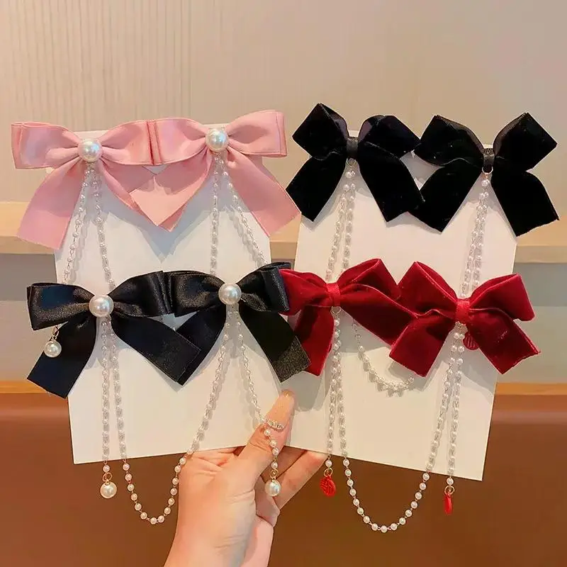 Elegant Pearl Bow Tassel Hair Clip Solid Velvet Hair Claw Children Princess Best Hairpins New Fashion Beauty Hair Accessories