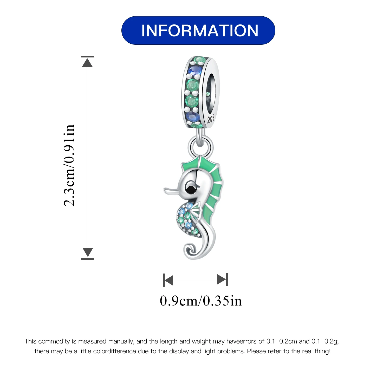 Color: Green - Fit Original Pandora Bracelet 925 Sterling Silver Seahorse Charms Beads Inlaid Zirconium Temperature Change Pendants Diy Jewelry
