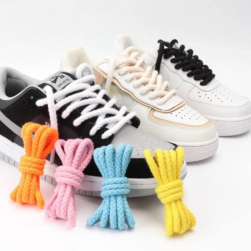 1Pair 8mm Bold Round Shoelaces Quality Linen Cotton Sneakers Laces for Shoes AF1 Shoe laces 100/120/140/160/180CM Shoestrings