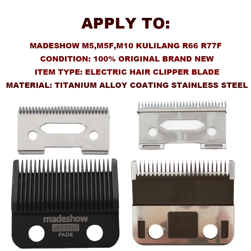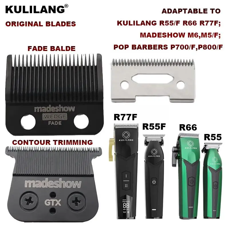 Color: green - Madeshow KULILANG M5F M10 R66 R77F Original Ultra Thin Fade Blade Hair Clipper Wedge Cutter Head Trimmer Replacement Accessory