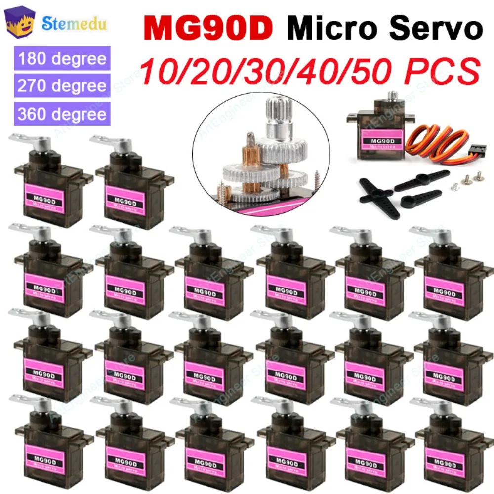 Color: green - MG90D 10/20/30/40/50Pcs Micro Digital Servo Motor Full Metal Gear 180/270/360 Degree For RC Airplane Helicopter Car Boat Model