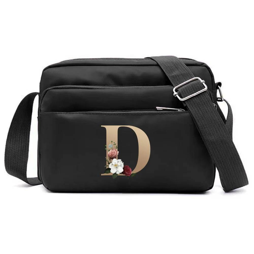 Color: green - New Fashion Multi-layer Travel Leisure Simple Storage Bag Black Gold Letter Series Printing Pattern One Shoulder Crossbody Bag