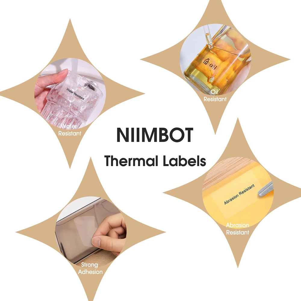 NIIMBOT APP offers variety of fonts, frame and Icons. one-click printing, saving time and effort. Thermal print technology provides clear lettering.No ink or toner required. With better quality with stronger adhesiveness. The Peel-and-stick thermal labels with strong self-adhesive backing.